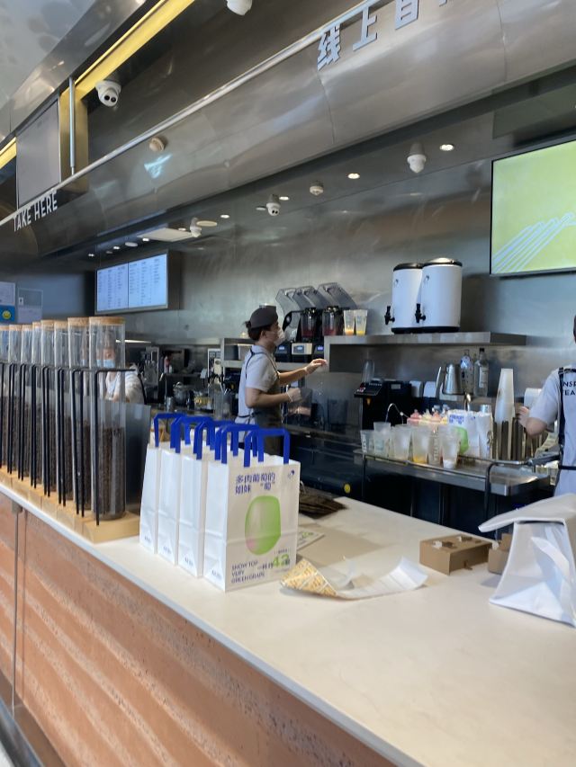 虹桥天地的这家喜茶位置很不错,地铁口上去商场出来就能看到,周末人特别多,基本上都要等半小时以上了,新出的青提爆柠和芝芝多肉青提味道很赞!