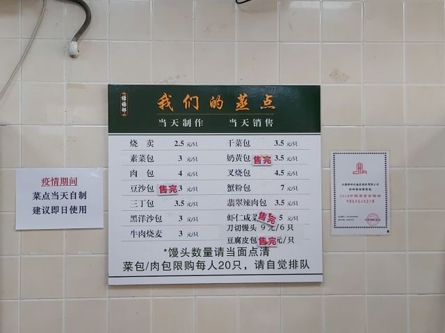 白斩鸡,陈皮虾,狮子头,大煮干丝,香酥鸭,响油鳝丝,上海白切鸡,豆沙青团,咸蛋黄烧麦,马兰头包子,玫瑰豆沙馅料,榴莲青团,银丝卷,红场,麻饼,蛋黄肉松青团,薄荷赤豆糕,酒香草頭,鎮店蟹粉獅子頭,马兰头青团,揚州大煮幹絲,鮮炸熱鯧魚,鎮江餚肉,蛋黄肉松烧麦,素菜包,鲜肉包,豆沙锅饼,荷叶粉蒸肉,叉烧包,虾仁,菠萝咕咾肉,青团,枣泥拉糕,开口笑,马拉糕,肉包,叉烧菠萝包,枣泥糕,梅干菜包,南瓜豆沙包,菠萝叉烧包,血糯米糕,盒饭,蟹粉汤圆,蝴蝶酥,长街蛏子,榴莲千丝酥,猪手,腊味煲仔饭,三丝春卷,皇中皇煲仔饭