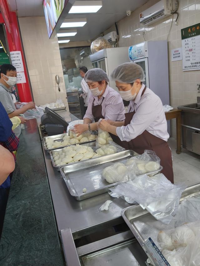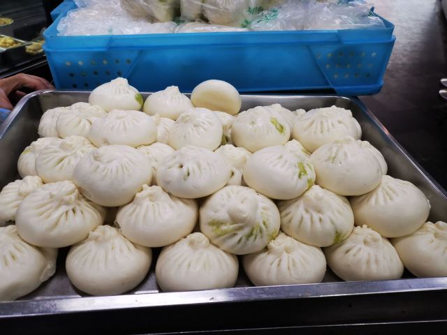 三接桥说上海滩最火的素菜包是绿杨村,可以找到如下的理由: 1、无论春夏秋冬,走过路过,没有不排队的; 2、无论你是谁?你从哪儿来?你要去哪儿?无论你排队几小时,每人只能限购20个(买包子有限购公示的,别处很难见到); 3、上海蔬菜包,只要是老上海人,只要稍微讲究一点餐食品质的,没有人不知道这个品牌的蔬菜包的; 4、上海要说小笼包子,大家都知道是什么品牌的(并非只有一个);要说肉包子,其实,至今为止上海没有一个肉包子是被公认的;但是,说起上海蔬菜包子,说绿杨村不会有人跟你吵嘴的,就算不是唯一的,起码还是公认的。 2020年5月4日中午11点35分,走过路过江宁路77号绿杨村外卖部,一时心血来潮,排队50分钟就只为买这15个蔬菜包(20个太多了,吃不了,10个太亏了,毕竟排队50分钟了); 5、买好以后,一出店门,即刻扒下口罩,狼吞虎咽干掉了1个。不过,Old FU不得不提醒大家一声,这个包子在蒸笼里所用的垫子,似乎有点令人担忧,它不是用稻草做的,而是硅胶(最后一图清晰可见),是食用硅胶?还是其它硅胶?不得而知。 6、绿杨村包子外卖的地址应该是江宁路77号,而不是奉贤路282号(所附照片塑料食品袋上已注明),虽然只是拐个弯,毕竟不是一个门面,建议小编改一下。
