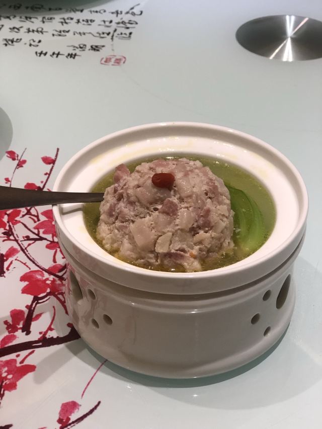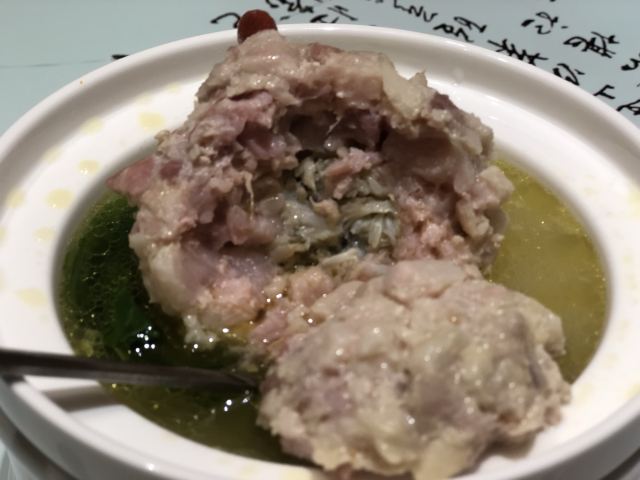 蛋花食游记镇店蟹粉狮子头, 经典的淮扬菜代表作之一,也是绿杨传菜。其形如中国园林中石狮子的头,故而得名。放在店家精心准备的白玉碗中,轻轻抖动,犹如狮头甩水。狮子头秉承了淮扬菜的特点,做工精致,格调高雅。肉是选用猪肋条,肥瘦比例六比四。肉不能用绞肉机,不能用排刀剁碎,一定要手动切丁,经过不断地摔打上劲,使得肥肉和瘦肉的纤维组织互相渗透后,放高汤文火炖煮2小时,不能大火,否则肉会散。严格完成一道道工序后,才能有高品质的出品。尝了一口,汤头清而不淡,鲜而不腻,很自然。狮子头肉质松而不散,肥而不腻,混合着蟹肉的鲜美,层次感分明,吃下去后余味醇香浑厚,绵绵悠长,好吃,比起我在南京金陵饭店吃的狮子头也是不遑多让。 干烧鳜鱼,干烧起源于四川,到了上海后发生了重大的改变,上海的厨师在干烧中加入了酒酿,满足了上海人民对酒香菜式的喜爱,也增加了口感,价低了辣度,更加符合上海人民的口味。干烧的特点就是要干,收汁一定要干,最后用红油勾芡.店家的出品也是相当的地道,菜式色泽金黄,收汁收的很好,下面铺着一层面条,肉瓣十分鲜明,肉质细嫩,干香入味,把鱼肉和旁边的肉沫,伴着面条一起吃,味道更佳。 阿奶红烧肉,老人们对于一家本帮菜品的喜爱,通常源于红烧肉。这道菜品也获得在座家长的一直称赞,老法子里的做法,犹如家里的味道。肥瘦相间的猪肉搭配酱油,勿须多高深的技巧,关键是时间和耐心。猛火炙烧下肉皮,肉皮在高温下微微收紧,可以在长时间的炖煮下保持韧劲。着色,勾芡也很关键,冰糖色加老抽,红色是外观的标签,诱人满分,一口入心,肥而不腻,抖动的美味。 醉膏蟹,用的是舟山的红膏蟹,浑身高红,看上去质量很好.一口咬上去,很浑厚的花雕酒味,肉质饱满细嫩,鲜香,无腥气,回味中带着丝丝甘甜。 白切走地鸡,白切鸡可谓是对于一只鸡最高的礼遇了,也是本帮菜里冷菜的精髓,绝不是散养鸡可以马虎对付的。自然饲料放养而成的散养走地鸡,不靠催熟,肉质细嫩,皮和肉之间的水份充盈,哪怕是鸡胸部分,也是软韧无比,佐以特调酱汁,味美无比。 竹荪虾滑,属于店里新推的菜品,也是意外地好吃。粤菜的烧法,摆盘精致典雅,竹荪的催爽和虾滑的鲜香Q弹很好的结合在一起,入口层次感分明,推荐 金牌香菇素材包,非遗菜品,完美收尾。青菜的香味是整个包子的灵魂,再佐以香菇,冬笋,木耳三种辅助食材,鲜脆油亮,加上松软的外皮,即使吃得再饱,也会毫不犹豫一口吞下。
