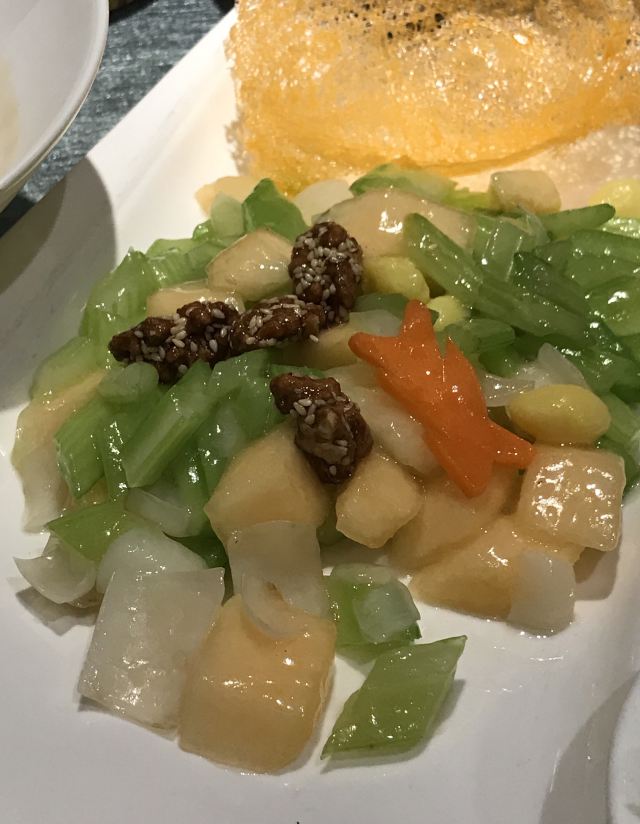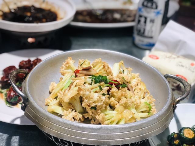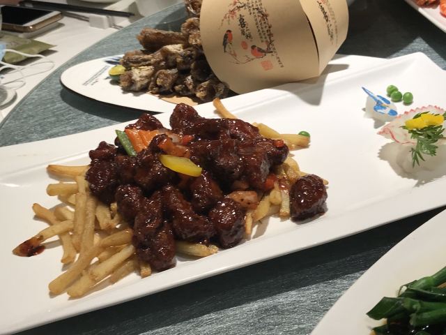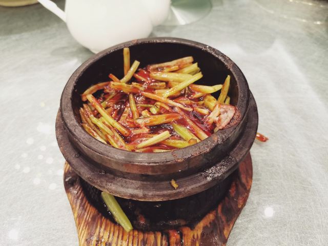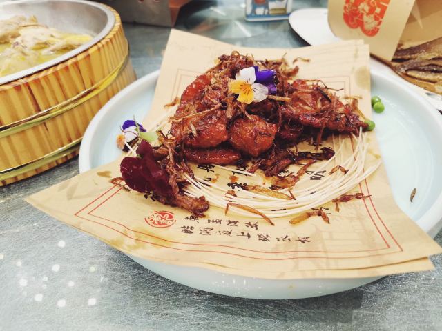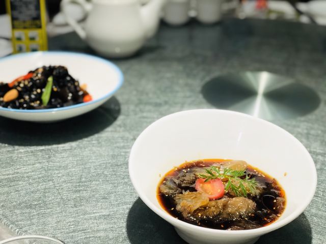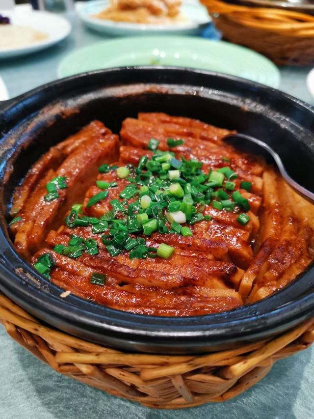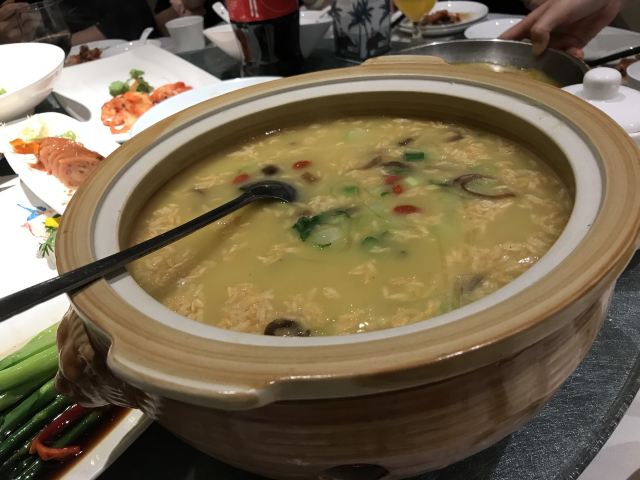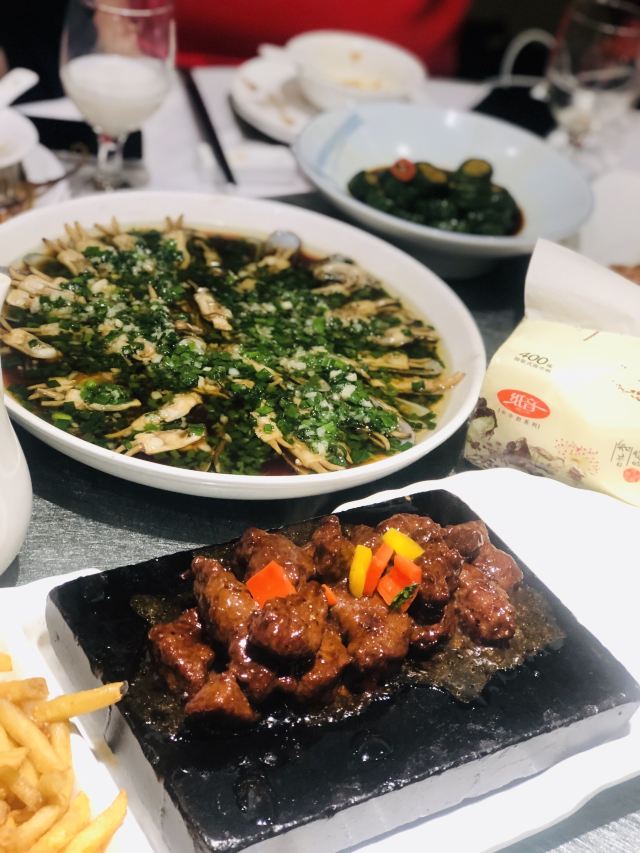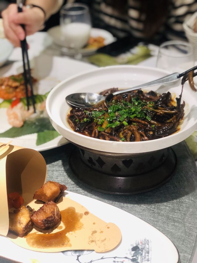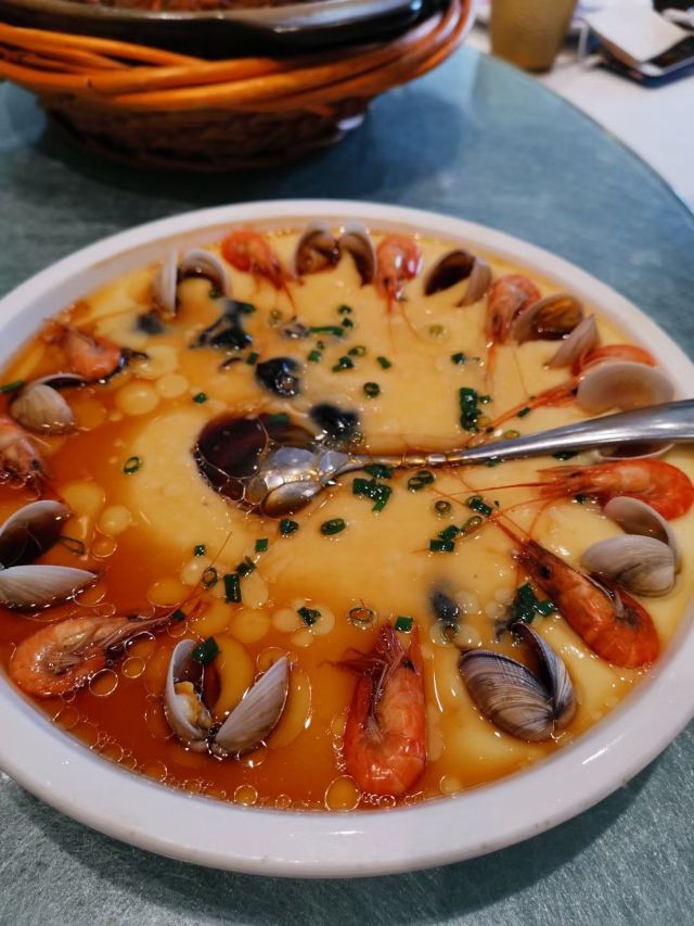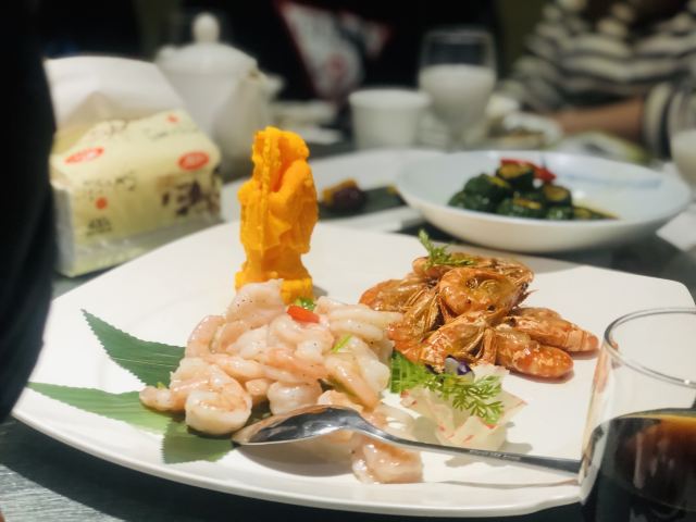 我本叫霁秣【口味】 点了很多菜,印象最深刻的就是「海鲜薏米羹」了,真是超级鲜美。海鲜和薏米沉在锅底,表面浮着锅巴米粒,口感很丰富。很大一锅,我们10个人吃,也吃了好几轮。 「水晶鸡」因为白斩鸡没有了,所以就点了水晶鸡,不同之处在于白斩鸡要蘸酱,水晶鸡是有汤水的,很难得在本帮菜冷菜里面吃这个,还挺鲜嫩的。 「牛仔粒」普通。 「蔬菜色拉」酱拌得比较有特色。 「风味草虾」等我点完菜坐上桌,发现刚点的草虾已经在桌子上了…… 所以,接下去说说服务吧!他们家的菜好像没啥好说的。 【服务】 点菜和上菜的服务员都还不错。但是整体来说,服务意识还是比较普通。人家大概不缺生意,所以待客态度就感觉有点可有可无。 【环境】 提前2周预定的包房,好像当时已经是最后一个包房了,空间比较小,还不如大厅亮堂,但是大厅比较吵,他们生意也太好,各大包房和大厅几乎都订满了。 一幢小楼,楼前有停车场,卫生状况尚可。应该是周边比较好的餐厅了,虽然各方面都比较普通。