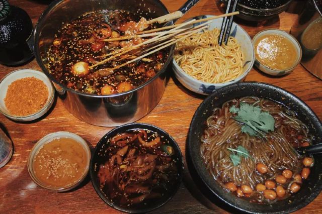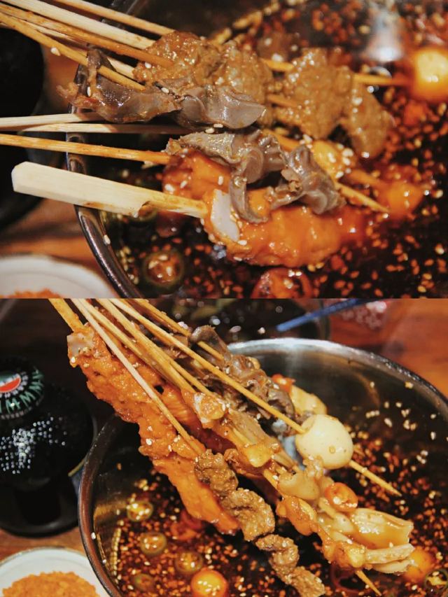 茉莉巡游记必吃榜推荐的7年成都串串料理老店,成都人个个 说好,赶紧过来拔个草! 🌶归蜀地.环境🌶 这家串串料理位于一个小巷子内,一打开门就闻到扑鼻的串串香气。零下六度还有不少人在寒风中排队等位,估计都是被串串的香味吸引过来的。 店面看似不大,却有三层。墙面上的和黑板报有点小清新,来光顾的大部分也是年轻的帅哥美女们。 🌶归蜀地.服务🌶 过去的时候基本坐满了,只能坐在靠近门口的位置。 服务员小姐姐担心门开进开出我们会被冻到,楼上有空位了主动提出给我们挪位,搬上搬下的,辛苦了。 现在只要到他家撸串还送2021年定制扑克牌,一边撸串一边打扑克,太欢乐啦!另外他们的限定周边也好看,值得入。 |串串^ 来他家最主要的目的当然是撸串啦!点了10来串,也就50不到。麻辣牛肉和厚切牛舌必点,肉质厚实,入味,麻麻辣辣的,正宗成都味。 另外大片里脊肉、掌中宝、鸭胗等也是必点的。 |冒脑花^ 成都人最爱的脑花必须来一份,吃上去有点像豆腐的口感,没有异味。 |冒鸭肠^ 每次吃火锅必点鸭肠,他家的鸭肠脆脆的,有嚼劲,没有想象中的重辣,适合大部分人的口味。 |担担面^ 端上来的时候整碗面被花生碎覆盖了,花生碎和麻酱拌在一起很香,好吃。 |老妈蹄花^ 吃多了辣来碗老妈蹄花温暖一下胃,蹄花鲜嫩,入口即化,汤头浓郁,不愧是八小时熬出来。 想拔草高性价比的成都串串料理,就来归蜀第吧。