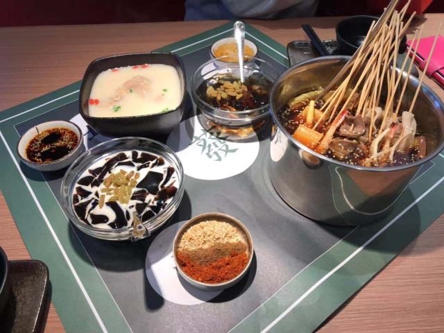 94664934962464很多年前开发的小店,那时候还没有什么网红店的说法,虽然在一个人气不旺的小路上,虽然店面小的只能容纳几张桌子,但他霸气的辣味一下子就征服了我,可以说是我在上海吃过最地道的串串,没有之一,一家小店能开多年屹立不倒,可见他的口味功底有多好了! 时隔多年再次过去,还是那个店面,还是那条小路,不过现在各种饭店兴起,变成了超级热闹的美食一条街,这家串串的还是低调的经营着!串串好吃就不多说了,够麻够辣够爽,不是那种化学添加剂的辣味,老妈蹄花入口即化,嘴唇都粘在了一起,满满的胶原蛋白,猪脑,好吧,这个东西我是不吃的,不过同行的朋友是猪脑超级爱好者,对这家的评价是有种惊艳的感觉,好吧,很难想象猪脑怎么个惊艳法,据说处理的非常干净,没有一点味道!很不错的小店,希望一直开下去,生意兴隆,毕竟这里也承载着我很多美好的回忆!