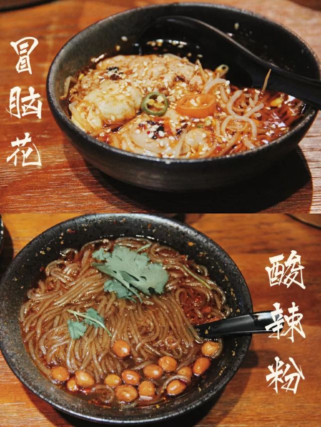 冷吃牛肉,鸭血,牛舌,黄喉,土豆片,担担面,酒酿圆子,麻辣藕片,毛肚,牛百叶,掌中宝,串串,老妈蹄花,红糖冰粉,冒脑花,红油抄手,酸辣粉,冒鸭肠,甜水面,麻辣牛蛙,里脊肉