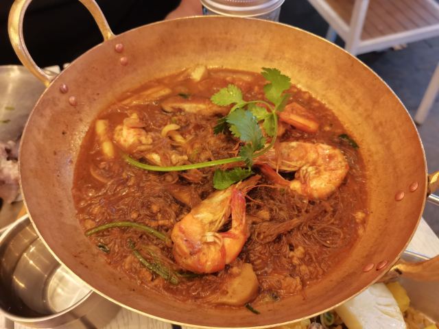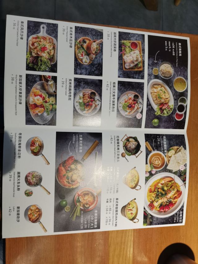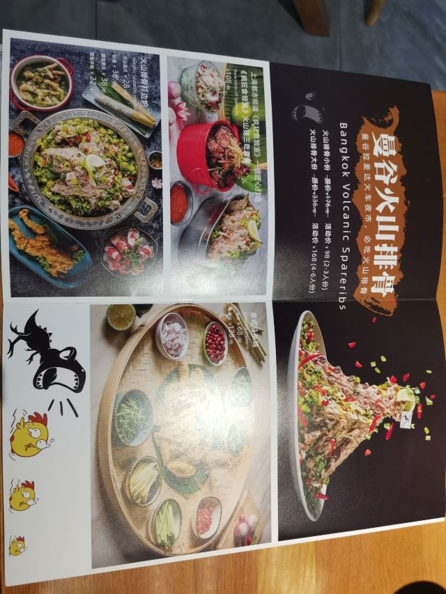 泰式黄咖喱牛腩,冬阴功海鲜汤,曼谷火山排骨,泰式海南鸡,虾酱空心菜,菠萝炒饭,海南鸡,咸蛋黄焗虾,冬阴功汤,猪颈肉,西米布丁,芒果糯米饭,天然新鲜椰子冻,生蚝锅,烟熏三文鱼色拉,泰式凤爪沙律,泰式金边粉,咖喱猪排饭,马来西亚拉茶,厚厚的虾饼,椰子碗,泰式虾片,果木炭烤猪颈肉,手打虾饼,泰式奶茶,沙爹鸡肉串