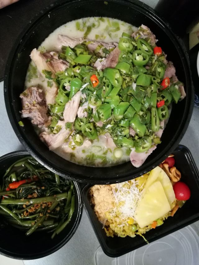火山排骨和空心菜都太咸,最喜欢菠萝炒饭,咖喱鸡和虾标准口味
