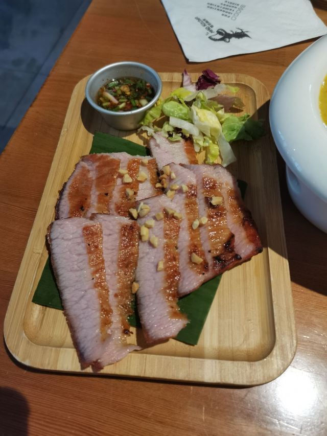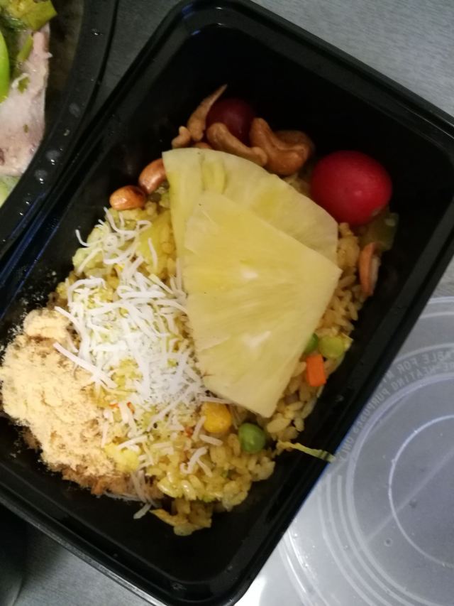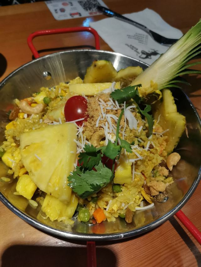 吹爆这家的菠萝炒饭🍍,配料也太丰富了,葡萄干,大虾🍤,鸡肉,胡萝卜🥕,腰果,菠萝,青豆,咖喱,鲜得来又有点酸甜,猪颈肉蘸酱才有味,嫩是蛮嫩的,分量不太够,小份咖喱牛腩,拌饭还是很下饭,牛腩也软烂,没点错,美中不足椰子饭有点硬,口感差一丢丢。