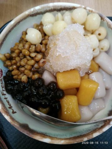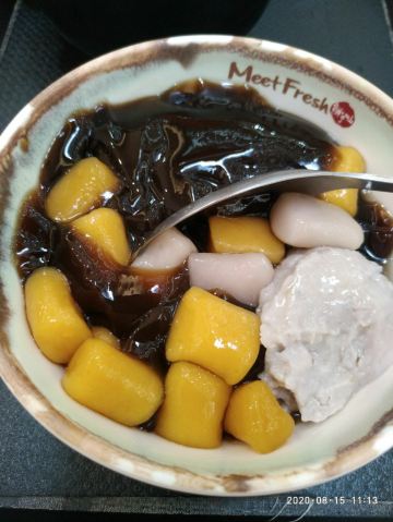 这家鲜芋仙从龙之梦一开业就存在,但是总看到很少的顾客在店里,中途还装修了几次,都在想是否能存活,昨天很难得晚上去龙之梦购物,路过这家店没想到基本满座。看来自己的猜测不合时宜。