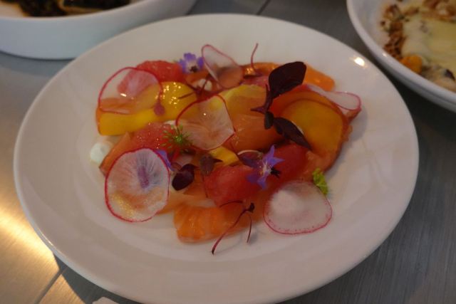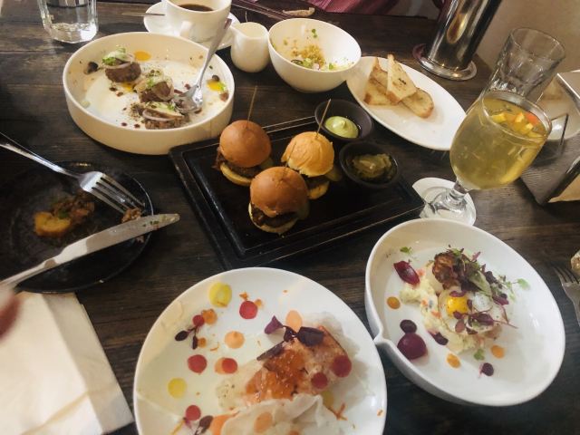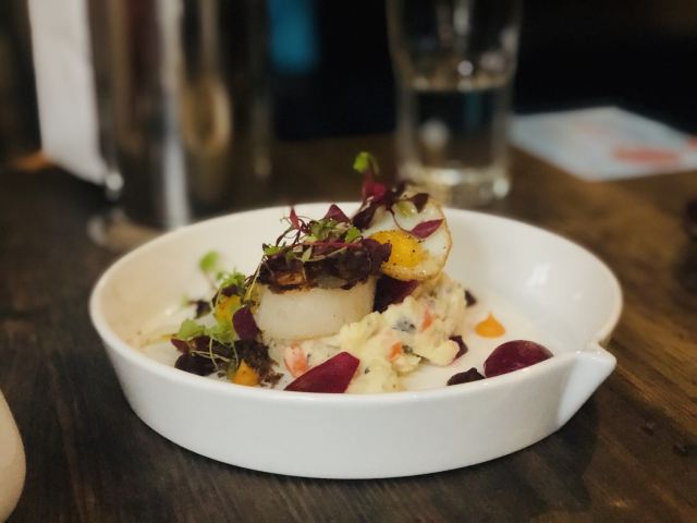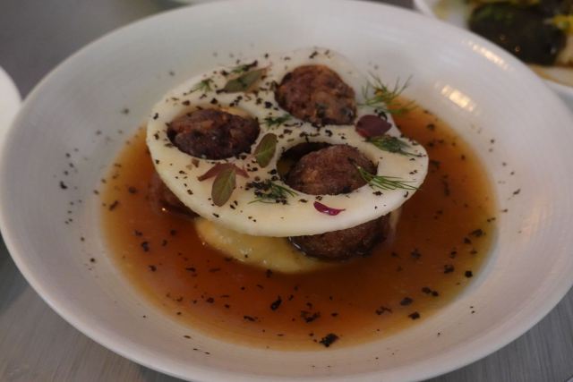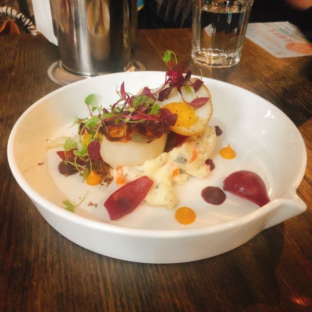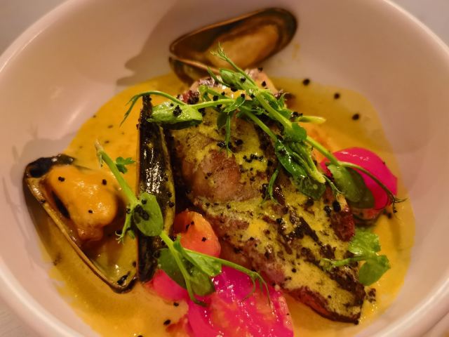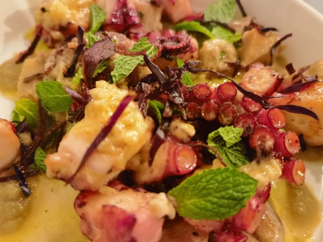 慢炖伊比利亚猪脸肉必须强推,来了一定要试试,口感和汁水综合到很棒的感觉; 八爪鱼配菜丰富,火候恰到好处; 隔了很久没写,菜名忘了:一道包含龙虾的海鲜拼盘,味道很不错,分量也很大。 没有哪道菜有瑕疵,总之担得起更高的分数。