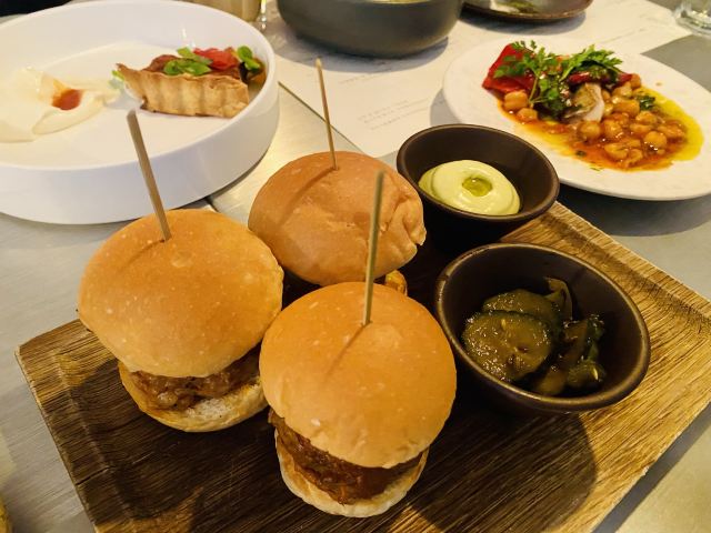 花生蔓越莓冰激凌,烤乳猪,煎扇贝配鹌鹑蛋,伊比利亚火腿肉,肋眼牛排,伊比利亚猪肉鹅肝汉堡,鹅肝酱脆片,椒盐墨鱼,烤花菜,蛋白饼配罗勒冰霜,八爪鱼,番茄蛋,酥皮饺子,烤吐司夹伊比利芝士与火腿配松露,炸蓝波芝士丸子,鵝肝鴨肉餡餅,三文鱼鞑塔,烤花椰菜