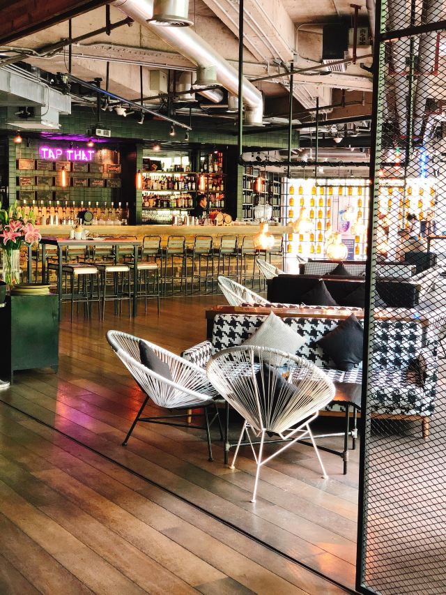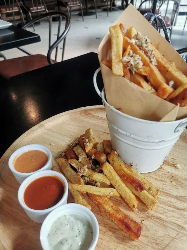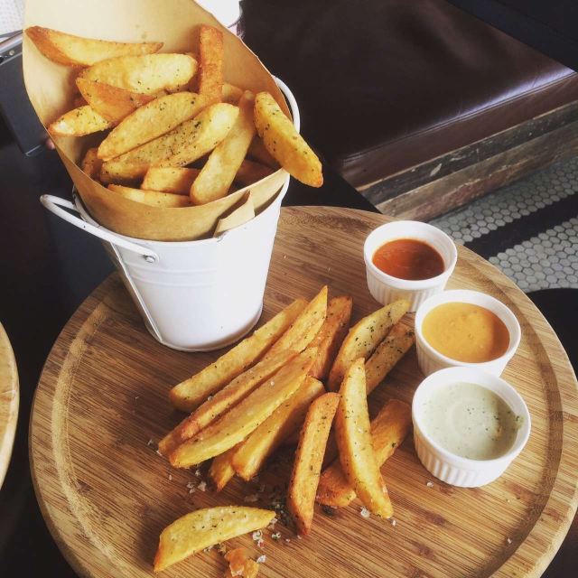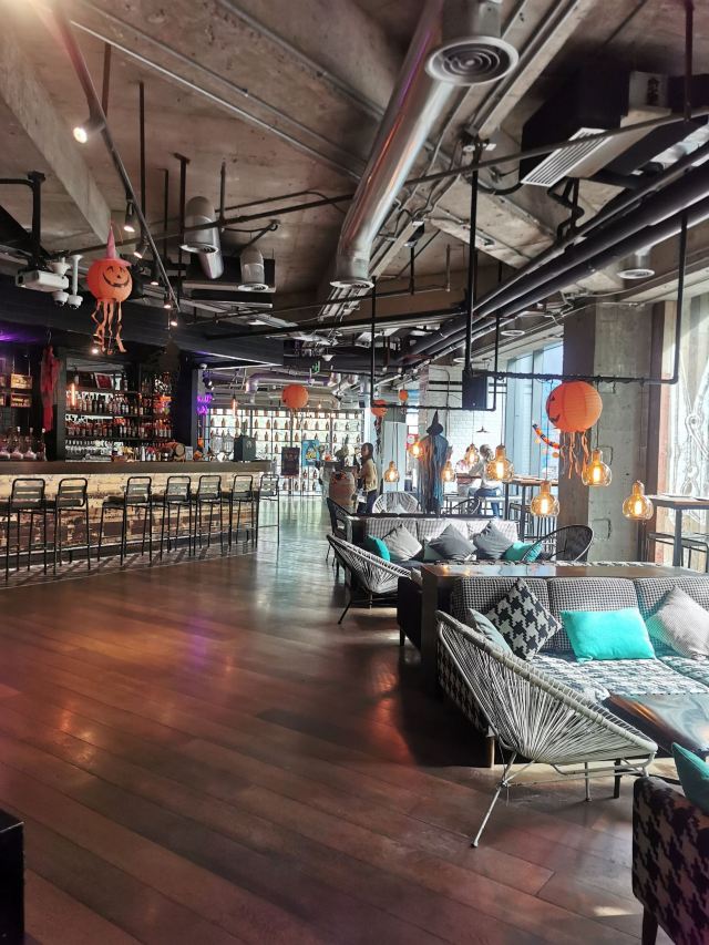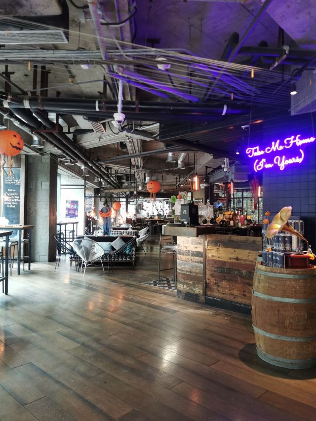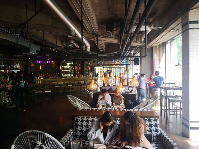 Liquid Laundry是一家纽约风格的美食酒吧,位于嘉华坊二楼。现代工业风,混搭的设计风格,融合很多现代的元素,大理石的吧台、木地板、混凝土屋顶等等。店内吧台、长桌座位一应俱全。同时大面积的玻璃落地窗使得采光效果很好,室内非常明亮,选择一个阳光甚好的午后,懒懒地窝在沙发上打发时光应该是个很好的选择。店内的薯条外脆里嫩,汉堡、意面饱受好评。