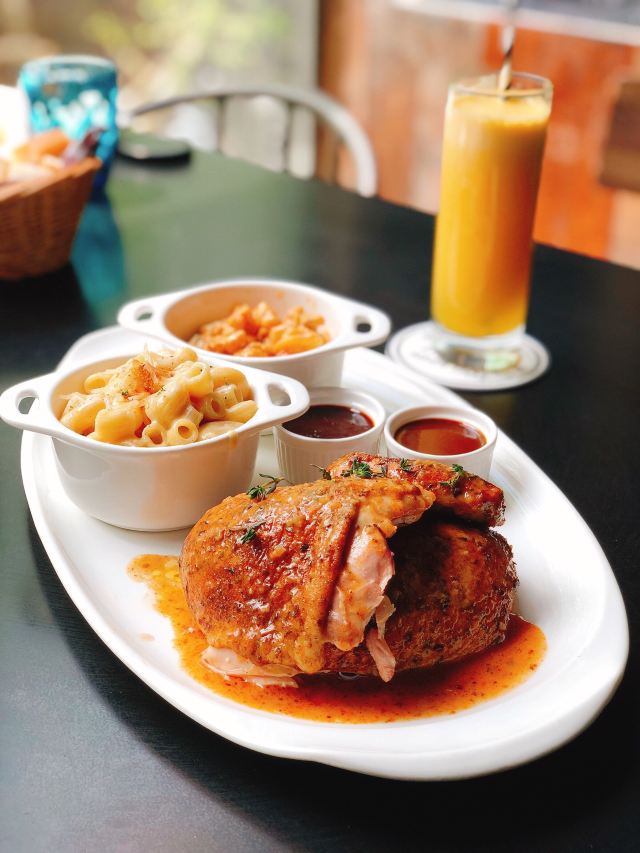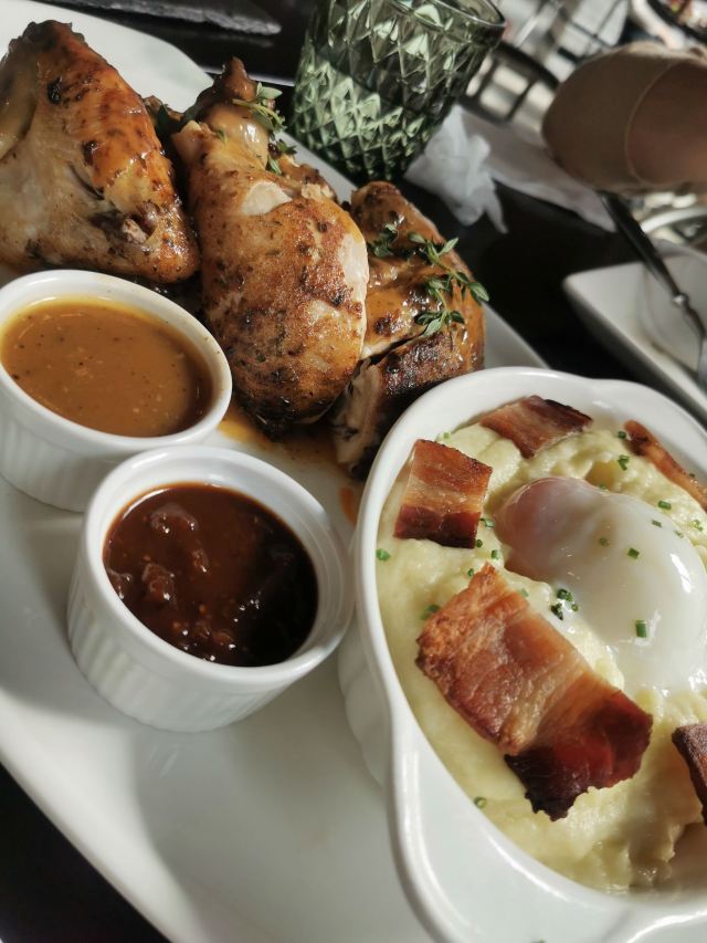 Liquid Laundry其实Liquid Laundry、首局、拳击猫是同一个老板,酒吧风格的餐厅很有自己的特色。 Liquid Launday冰冷硬朗浓浓的美式工业风,混凝土钢结构的装饰风格,加上美式音乐,我和朋友都超喜欢这里的环境。 其实这里周末的brunch是最受欢迎的,因为只有周末才有的班尼迪蛋,听说非常好吃,好像必须要来等开门,人会非常多。 工作日的午餐,我们两个人只能点商务套餐,让人惊奇的是这午市菜单,竟然是搓衣板,想知道这老板的意图,让人看完菜单跪搓衣板吗?点了一份大胃王套餐,其实就是半只烤鸡+当日沙拉+自选配菜,烤鸡非常好吃,别的就只能呵呵了,我们不是大胃王,没吃完……套餐包含一杯饮料,我选的冰红茶太酸了。 除了套餐,还搭配了一份牛油果三明治,底层是黑色全麦面包,然后厚厚一层牛油果+一堆叶子,可能因为我喜欢牛油果,觉得很好吃。