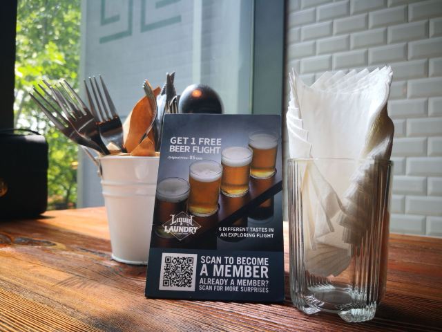 ma****ly如果有什么能让我放弃周末一觉睡到大中午的福利,除了旅行,那就是一顿美食了。 四月最后一个周末,我难得起了个早(其实就比中午早了一个小时),来到位于淮海中路的Liquid Laundry,赶赴一场Brunch之约。 在嘉华坊里,电梯直达二楼,电梯门一开就是Liquid Laundry的大堂,因为店里有鲜酿啤酒的工坊,所以啤酒桶、玻璃啤酒罐等就理所当然的成为了大堂里最显眼的装饰物了。 就餐大厅里,宽敞的空间、裸露的墙体、流线的各种管道,浓郁的美式工业风扑面而来。 靠窗台的那排高脚凳四人位餐桌,是夜晚里最人气的位置;却因为初夏中午有些耀眼的阳光让人望而却步,于是在他人还纠结的时候,我捷足先登。 慢熏牛腩班尼迪蛋,我就是为它而来。 把糖心蛋戳开一个小口,看蛋黄缓缓的留出,和荷兰酱融合在一起。 牛腩煮到柔嫩,于是切一小块有牛腩的松饼,蘸上溏心蛋和荷兰酱的混合,入口咸香美味,感觉整个人都柔软起来了。 特浓黑巧克力蛋糕,还好不是熔岩蛋糕 虽然是一起点单,但这道甜品和主食一起上桌是神马情况?于是在还没吃班尼蛋的情况下,先三五几口的速度吞下了那个草莓冰激凌球。 蛋糕的内陷其实也是柔软的,微微的也是温热的,虽然是特浓黑巧克力,但吃起来还是偏甜。 装盘点缀的是焦糖,倒是我之后那杯啤酒不错的配搭小食。 密语仙境 在早午餐的那几张纸头菜单上看到这杯叫做密语仙踪的精酿啤酒,对于它是一款没有苦味的啤酒感了兴趣。 原来这是一款白啤啊,经过两种麦芽为原料发酵,并且在二次发酵中加入了洋槐蜂蜜,所以这款密语仙境喝起来几乎没有啤酒花的味道,口感上略酸微甜。 还有就是酒精度有些高,喝了一半之后我就觉得有些上头,于是翻了翻菜单,原来它的酒精度有10.5度。 就酱,用一颗班尼蛋,一块黑巧蛋糕,一杯没有苦味的白啤,度过一个慵懒的午间时光。
