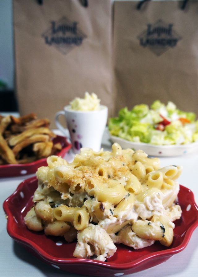 理想生活志Liquid Laundry 是拳击猫的子品牌,主打精酿和美食的搭配。怀着对食物满满的诚意,简单却能抚慰灵魂的家庭分享套餐:248元哦!足够四个人吃,外卖过来每一个都单独包了保鲜膜,很安全! 爸爸为小宝贝特制了一份宝宝餐,宝贝看见说:“真是丰盛的大餐啊!” 初春的午后啃着整只迷迭香烤鸡,说不出的满足,恨不得一个个手指吮一遍。烤鸡的皮很薄,满满的香料味道,很香,鸡肉一点不柴,很嫩。搭配的酱有三种:原味酱、BBQ酱、亚洲风味酱,不过我还是喜欢吃原味。 土豆泥:绵密的口感,奶香十足,里面应该加了稀奶油和黄油的。 凯撒沙拉:分量十分大,蔬菜新鲜爽脆。 扒蔬菜配香蒜鳀鱼热蘸酱:烤蔬菜品种很多,茄子,节瓜,彩椒。鳀鱼热蘸酱鱼味浓郁,个人觉得蘸凯撒色拉更好吃哦。 芝士通心粉:拉丝的芝士简直了!富有嚼劲的通心粉搭配蔬菜,营养丰富。 意大利香肠披萨:超大一份,满满的萨拉米香肠,就是用盐巴腌制风干保存的肉类,口味鲜香,披萨是厚底,很有韧劲,小宝贝很喜欢呢。 外卖下单的话,还有【1元购】拳击猫精酿(第一血):原价20,限时1元购,活动至3月8日。