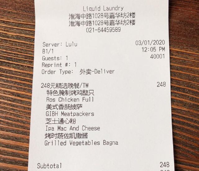 🎐vivian婷🎏其实Liquid Laundry、首局、拳击猫是同一个老板,酒吧风格的餐厅很有自己的特色。 Liquid Launday冰冷硬朗浓浓的美式工业风,混凝土钢结构的装饰风格,加上美式音乐,我和朋友都超喜欢这里的环境。 其实这里周末的brunch是最受欢迎的,因为只有周末才有的班尼迪蛋,听说非常好吃,好像必须要来等开门,人会非常多。 工作日的午餐,我们两个人只能点商务套餐,让人惊奇的是这午市菜单,竟然是搓衣板,想知道这老板的意图,让人看完菜单跪搓衣板吗?点了一份大胃王套餐,其实就是半只烤鸡+当日沙拉+自选配菜,烤鸡非常好吃,别的就只能呵呵了,我们不是大胃王,没吃完……套餐包含一杯饮料,我选的冰红茶太酸了。 除了套餐,还搭配了一份牛油果三明治,底层是黑色全麦面包,然后厚厚一层牛油果+一堆叶子,可能因为我喜欢牛油果,觉得很好吃。