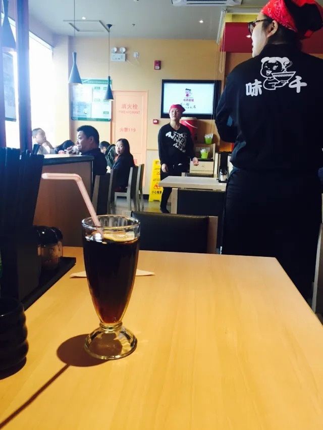 Weiqian Lamian Noodles (shanghaigongyuandonglufen)以前每次来都是点麻麻辣辣牛肉炒饭或是石锅鳗鱼饭,今天天气阴冷阴冷的,突然想换个味道,想吃热热的汤之类。在米饭和面条之间,我依然只钟爱米饭,于是乎点了这个爆裂豆腐锅套餐。套餐里除了有爆裂豆腐锅还附送米饭、生菜和饮料,非常完满。 除了爆裂豆腐稍辣之外,其他都很OK。虽然辣,却很下饭,害我把满满一碗饭吃个精光。 尽管豆腐、生菜都是素的,但这种感觉还是很好,在这个冷冷的冬日,心里、胃里都暖暖的,很符合他们的广告语:这一碗让心里好满。