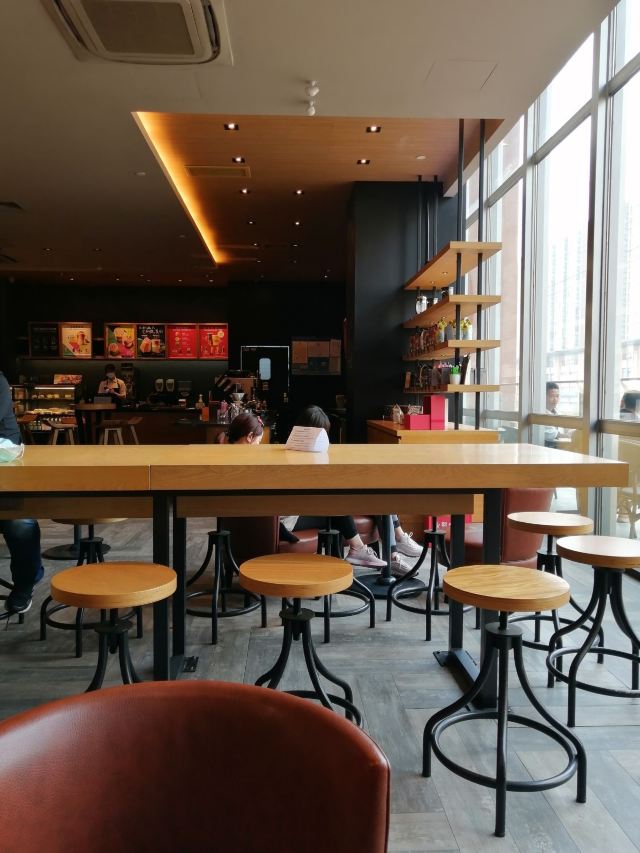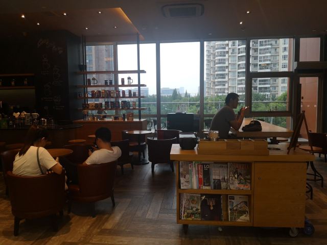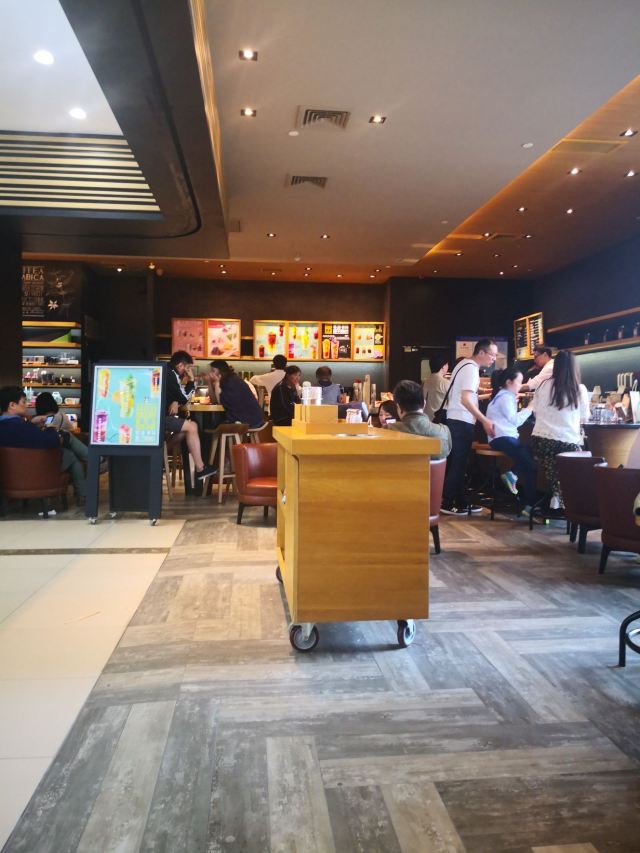这次来缤谷广场,大大刷新了我对他的认知。 以前觉得它很low很山寨,这次去了东区,觉得与时代接轨了。 缤谷广场有两家星巴克这家在东区。 门面不算小,有景观座位,外面还有个露台,应该是吸烟区。 不过这么热的天,谁愿意呆外面?