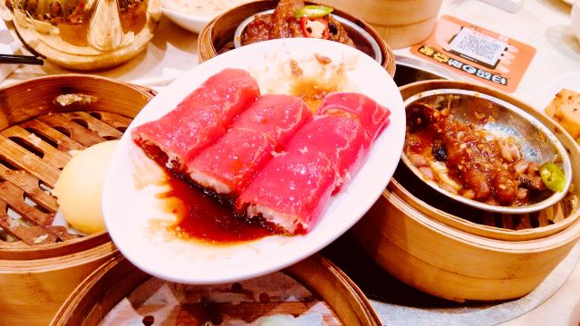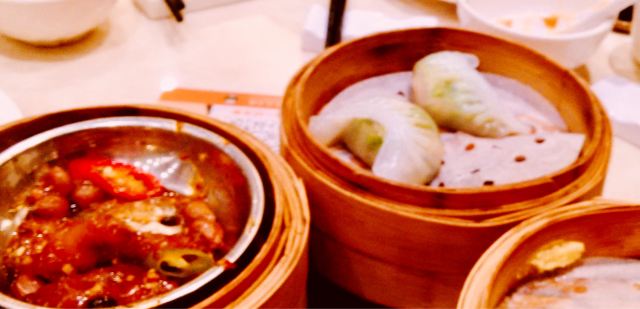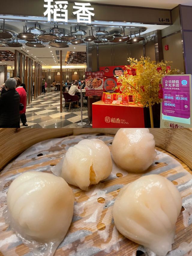 稻香静安店,坐落在静安寺晶品商业中心六楼,地铁二、七、十四号线静安寺站有专门通往“晶品”的通道,交通非常方便。“晶品”是个大型商业中心,环境和氛围都很不错。 “稻香”是粤菜连锁品牌,主打粤菜及茶点。同学相约在稻香静安店午茶,点了很多茶点,印象比较深的是明虾虾籽烧卖、虾仁红米肠、翡翠虾饺、酱汁凤爪、虾饺皇、虾肉云吞等,做工精细,色形漂亮,味道鲜美,价格也不贵,性价比不错。