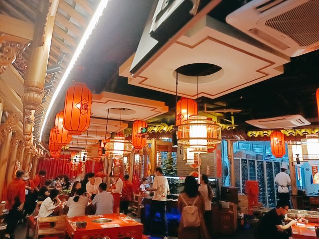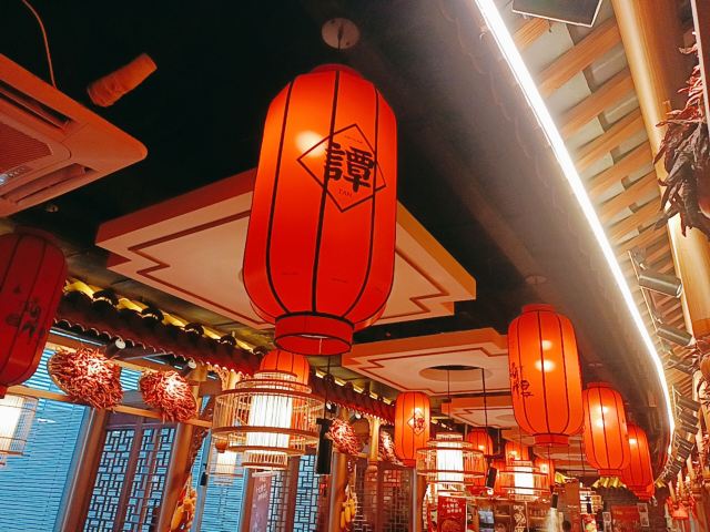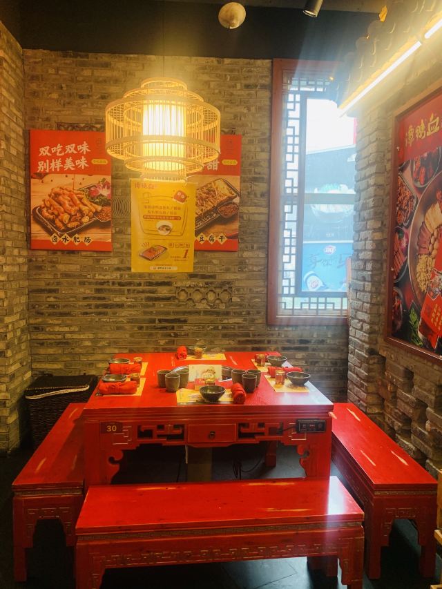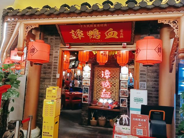 谭鸭血老火锅(打浦桥日月光店) 很多地方的谭鸭血老火锅都是要排队的,而且对于他的口味一直褒贬不一,环境和很多火锅店一样大红色的古风,锅底比较丰富,菜品口感只能说是普通。