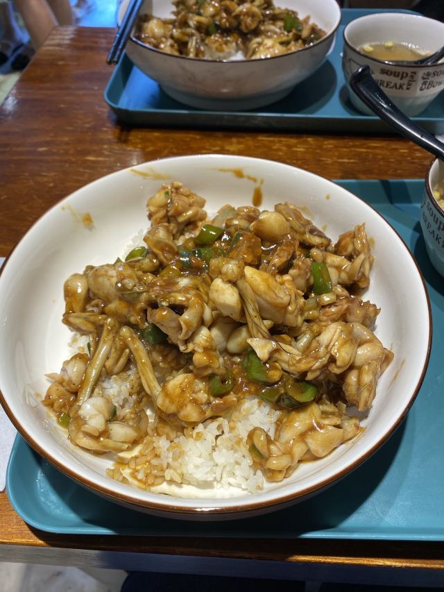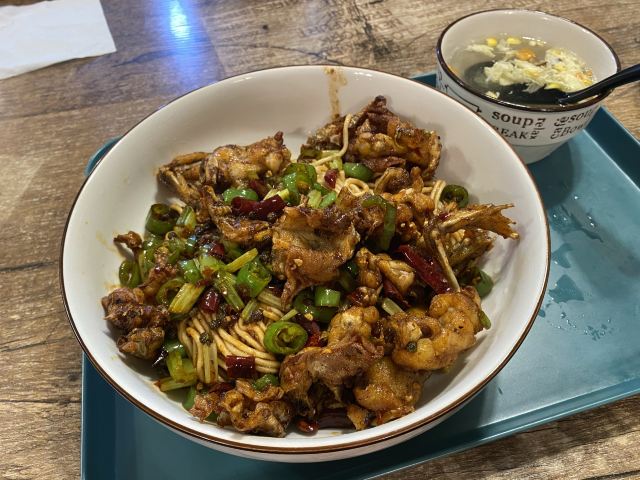 牛蛙是这里的特色,有酱爆,白汁和麻辣三种口味,可以配饭也可以配面。 三种口味各有特色,每一种口味都有其独特的香味,值得都尝试一下。 餐厅有两层,饭点的时候人不少,但翻桌也快。
