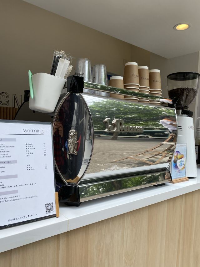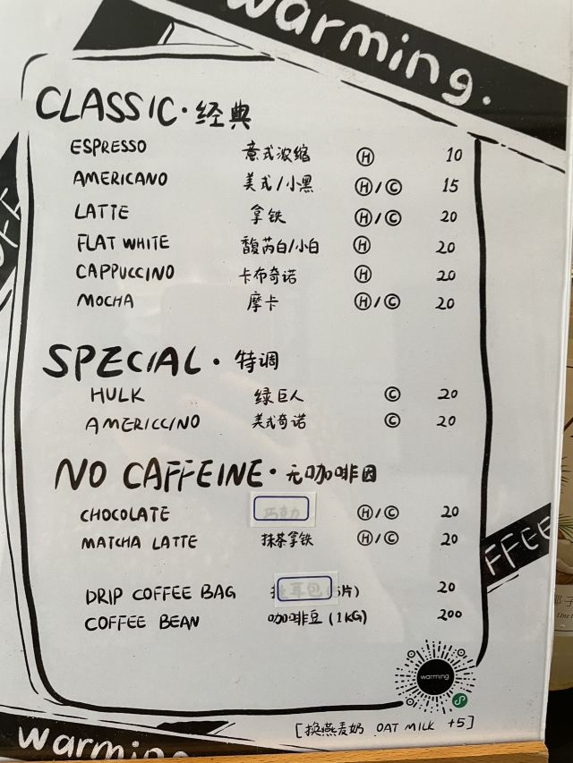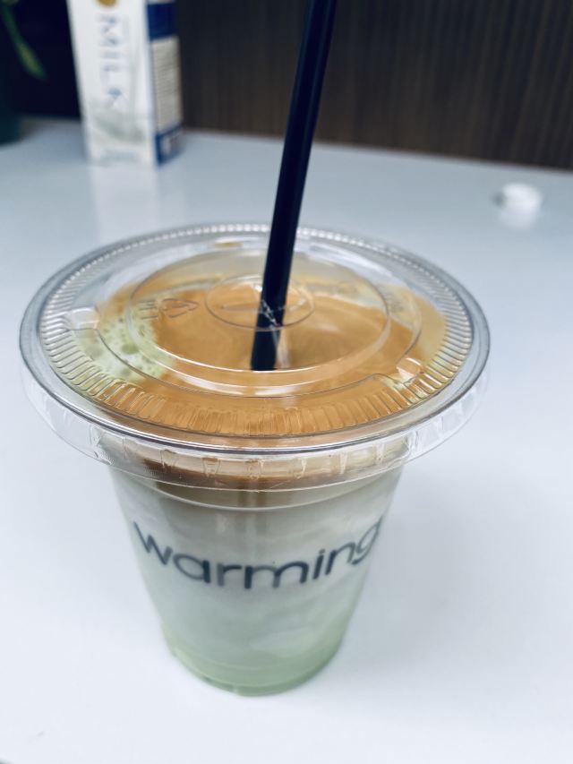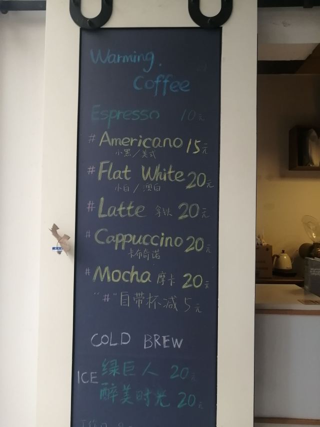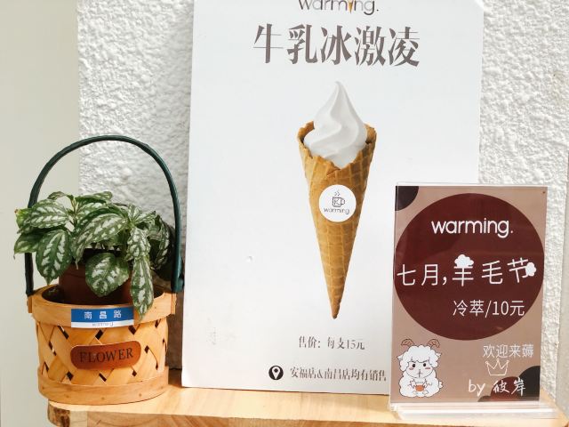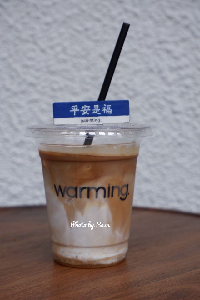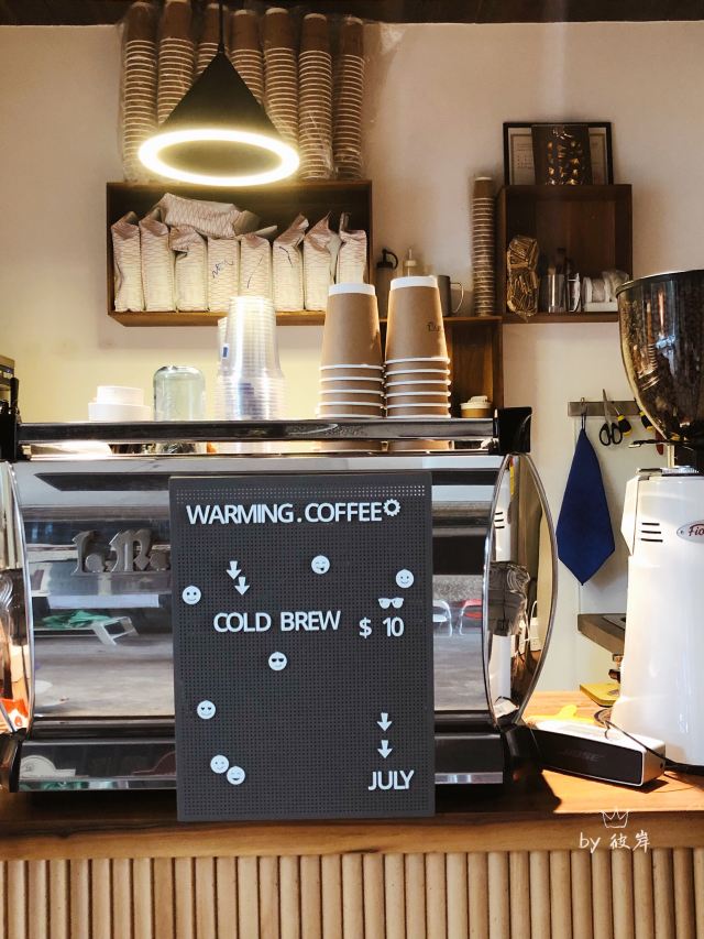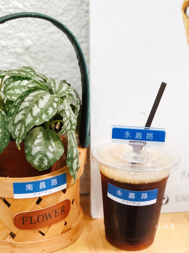 最近被Warming家的路牌吸铁石所吸引 硬是拉着朋友陪我过去打卡 安福路上真的是热闹 各种网红店齐聚 还有可爱狗狗们的陪伴 点了之前的店内限定款咖啡「白桃拿铁」 不过现在已经变成日常咖啡系列啦 随时都能喝到 底下是白桃果肉 拿铁味挺浓的 口感喝上去很清新 味道很特别 还挺适合魔都现在这个炎热的天气哒