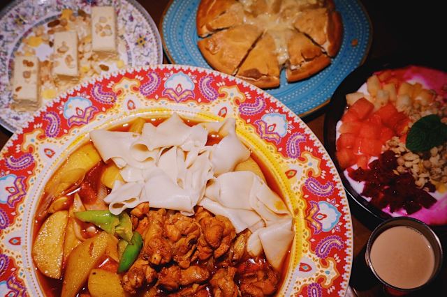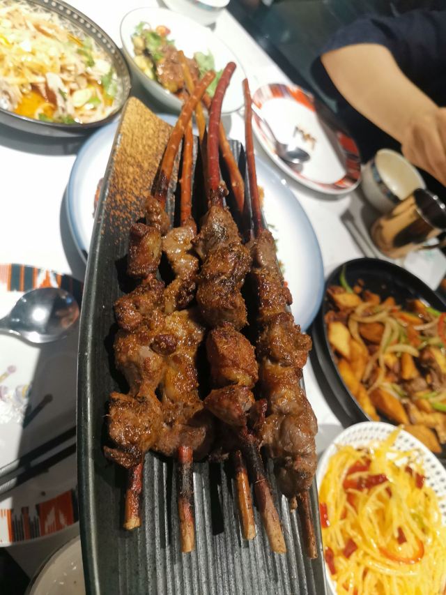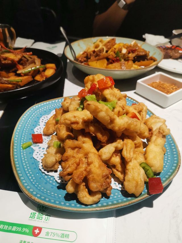 沙湾大盘鸡,石河子凉皮,帕芙立,土耳其奶虾,时令鲜果酸奶,新疆番茄炖牛腩,回民椒麻鸡,牛油果南瓜汤,新疆酸汤木棉豆腐,塔什库尔干小牛,买苏拉提烤羊排,现煮新疆奶茶,沙湾大盘走地鸡,羊肉串,一品风味炒馕,红柳烤肉,石河子凉皮(麻酱),孜然羊肉炒饭,额河烤鱼,塔哈尔芝士羊肉饼,菠菜木耳炒鸡蛋
