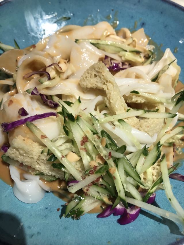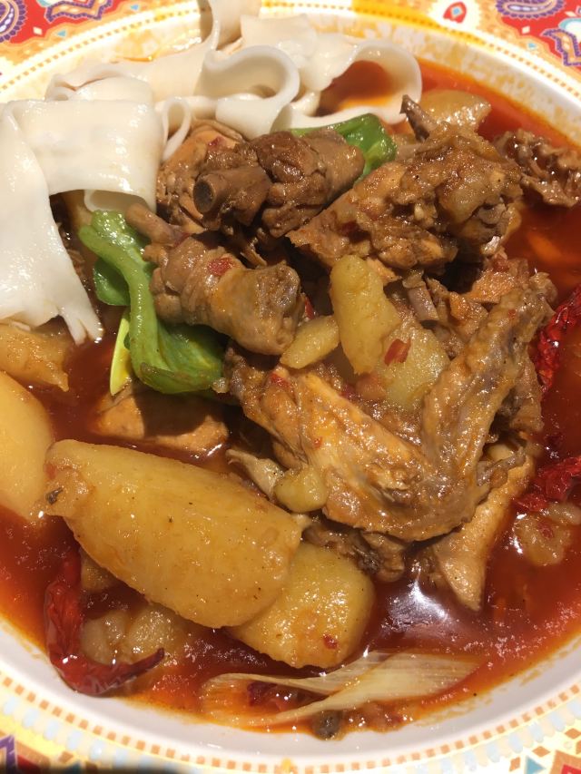 Iamis【环境】 这家店换了一个位置,找了半天,终于找到了。装潢依旧是原来的风格。 【服务】 店员服务很及时,会主动添水,还会询问菜肴味道如何。 【口味】 「沙湾大盘鸡」这道获得了朋友的好评,鸡肉的量挺大的,鸡肉似乎是腌制过的,比较入味,咬一口不是白白的肉。一盘量很大,肉挺多。 「热炝秋葵」秋葵的卖相很好,碧油油地绿,但是有一只是很老的,我和朋友都发现了。 「羊肉串」没有多点,一块精肉一块肥肉相间的,还可以。 「串烤阿魏菇」真的很不错,汁水很多,推荐。 「石河子凉皮(麻酱)」石河子凉皮,这道拌着麻将,有点粘稠了,味道上不是很入味,可能是酱料加少了。 「帕芙立」这个一般,没有另一家好吃。「自制酸奶」酸奶的口感真的是怪怪的,不能说不稠,但又跟平时喝的那种不一样,不太好喝。