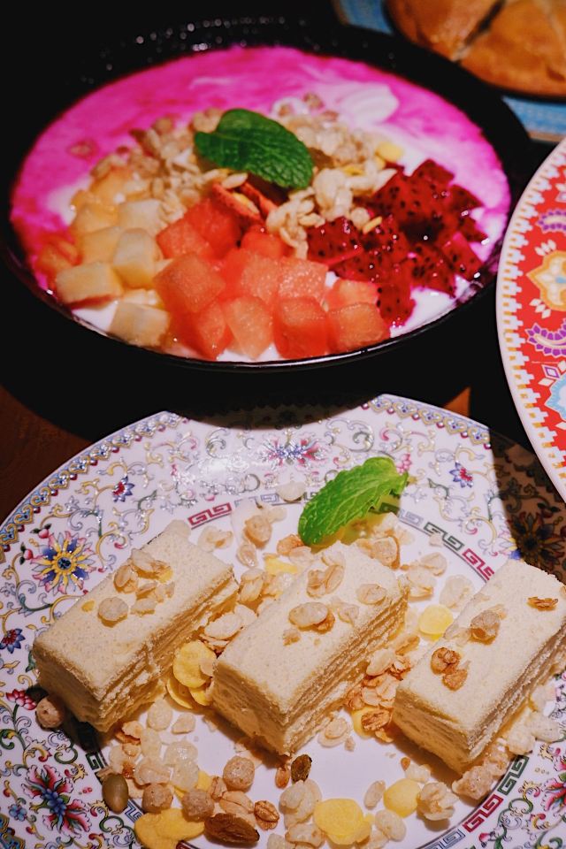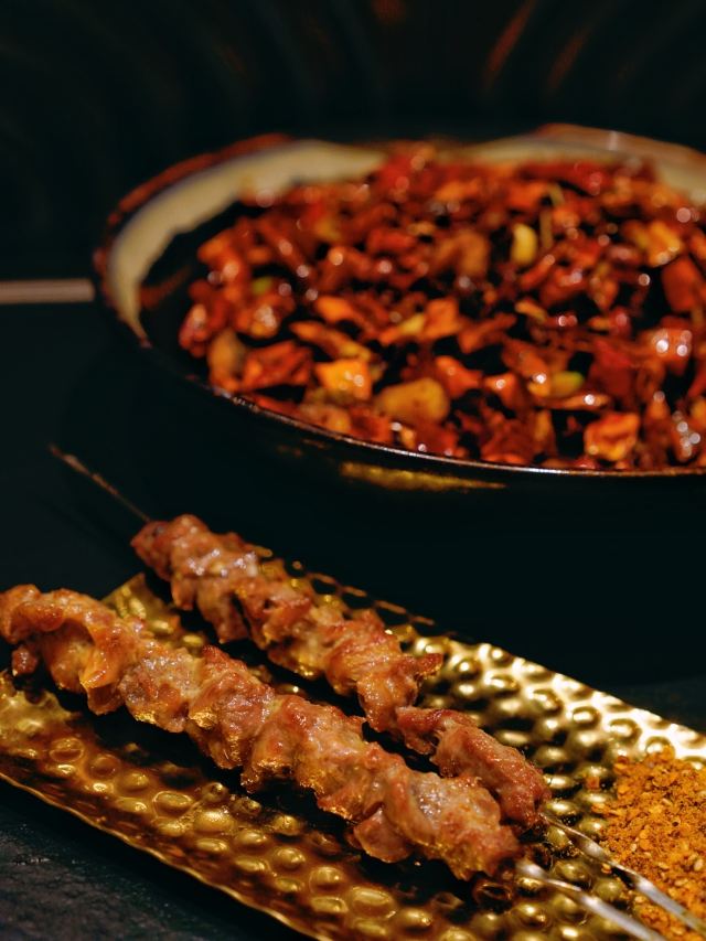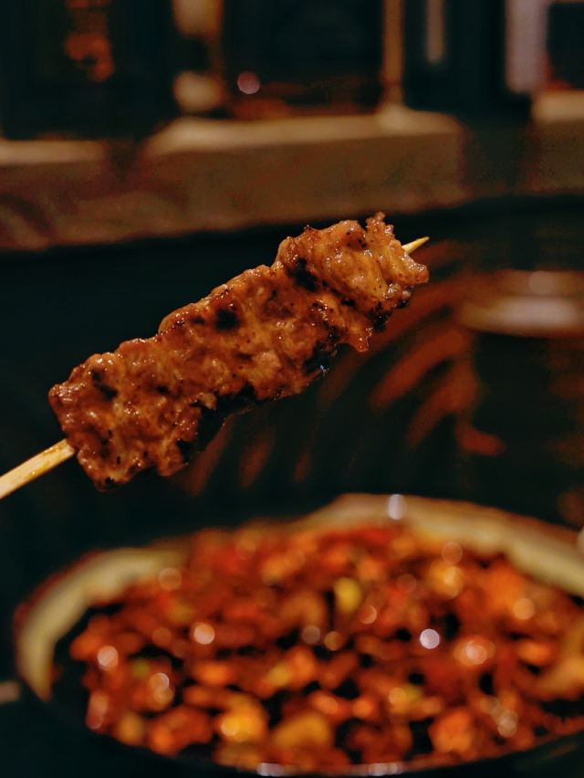 吃饭就别叫我了塔哈尔竟然开小酒馆了⁉️中海环宇荟最具烟火气的夜宵圣地,营业到凌晨1点的烧烤小酒馆,让你酒足肉饱happy不ending❣️ 如果天公作美的话,我是非常推荐坐在露天的,毕竟这才是夏夜的正确打开方式呀✅室内除了2张中东风情的榻榻米座,吧台也坐拥绝佳视角,看着师傅在烧烤档前马不停蹄,油然而生一种日式烧鸟店的情怀,深夜食堂所描绘的画面也莫过如斯了吧~ 光是羊肉的不同做法就占领了足足一页菜单,只放盐的羊肉串、炙烤羊排串以及炭烤法式羊排,感觉不滚一遍菜单都对不起自己的256G烧烤胃。 凤尾虾一口蘑无论装盘还是口感,都像极了西班牙料理,中西合璧的创意令人拍案叫绝,还有黯然销魂的柴窝堡辣子鸡,足以battle江湖川菜。 我竟然喝到辣的奶茶冰粉,有史以来第一次被奶茶给辣到,第一口还以为是自己味觉失调,没想到第二口竟然辣出回味来了,赶紧让小伙伴也来帮我鉴定一下,快告诉奶茶精,这不是真的!Emmm……Actually,not bad~兴许可以作为网红爆款推一推~