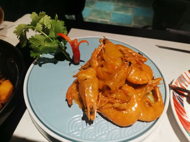 bluecrane【位置】太难了!!!在地下二层转了十来分钟,几乎转遍每个角落,就是没找到!!如果我自己来,一定不找了,哪家西北菜不香,非要这家? 地铁站出来,笔直向前,穿过圆形中庭,左前方有宝珠,再向前,到底,看到龟丸制面、左手是小满手工粉,然后就能在柱子后面看到这家绿色的门头了。 【服务】加水还是很主动的。不过实习姑娘眼神还要再训练一下,五套餐具放了两双筷子,想她要筷子,而且说了三个人没有,她还只拿了一双,再拿,才够。 【口味】因为小伙伴两年取消了三次新疆行程,安抚一下,来吃顿新疆菜,就当去了[得意]可是看着这些菜品图,没有一道菜特别感动到我的。都是可以,不出跳吧。 -土耳其奶虾:本来下面应该有干冰营造气氛的,但是不知为什么今天没有了…… -炸蘑菇:朋友推荐的,但好像都是面粉,也没怎么吃出蘑菇的鲜。 -红柳烤肉:肉质还可以,四块肉一串,柳枝头上被截平了。