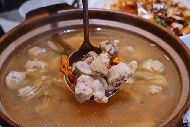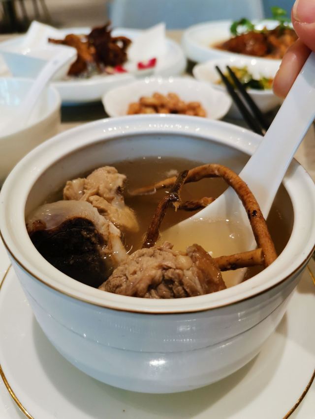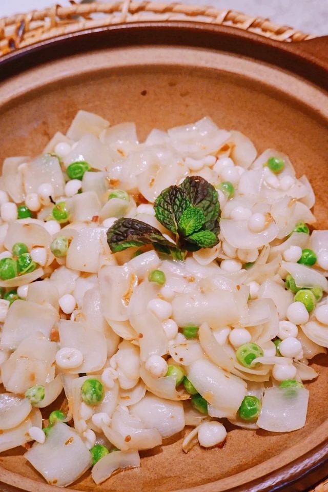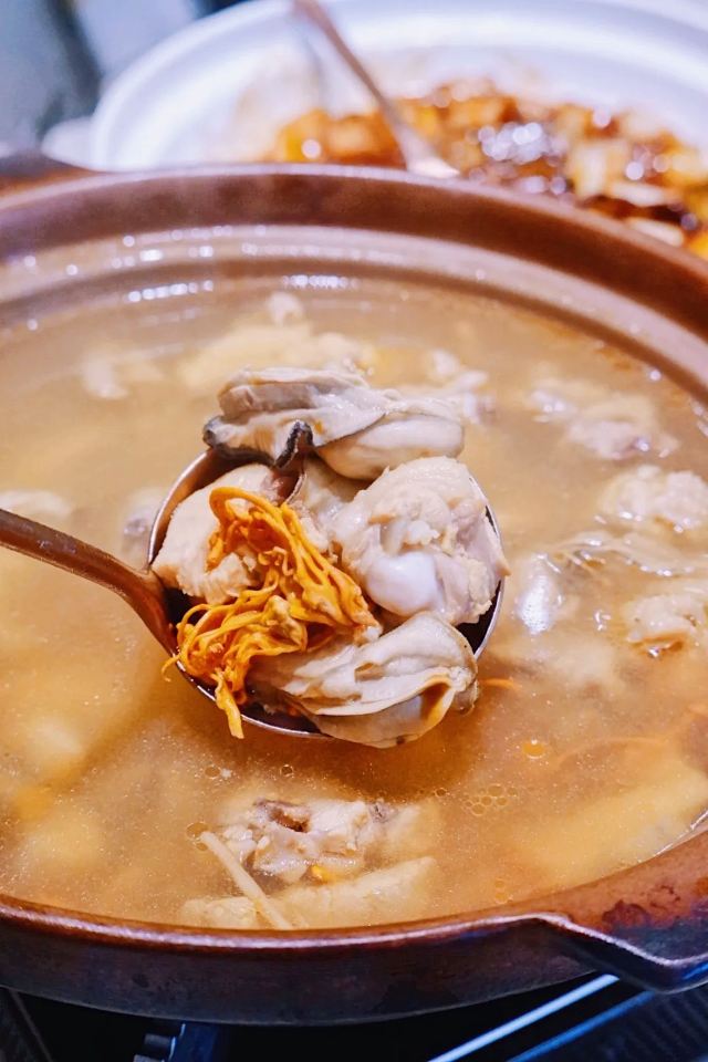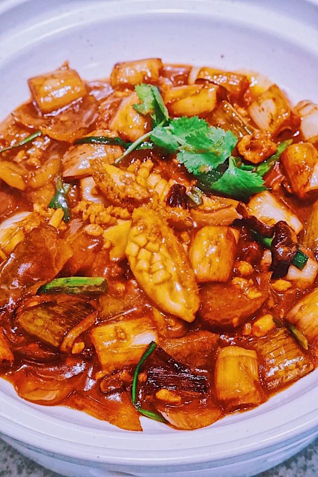 加油干饭呀潮汕不只有牛肉火锅,还有明火靓粥和滋补暖煲,我敢说没有人会拒绝一顿潮汕菜的温暖治愈。在魔都断崖式降温气温突破冰点的那一天来到潮禧,足以可见我对它是真爱了! 寒冬已至当然要来一锅热气腾腾的清补生蚝鸡煲补补身子,汤底中除了虫草花还加入可以生津润肺的麦冬,嚼一下还有丝丝甜味呢,情不自禁连喝三碗汤,清香适口不油不腻。 清新脱俗的百合焗芡实煲,则是养生girl的最爱,百合和芡实营养丰富,搭配青豆淡妆浓抹总相宜。 浓油赤酱的京葱烧鲍参,鲍鱼和海参这CP实力圈粉,京葱爆炒增加香气,酥烂入味的海参真是叫人大快朵颐。 可可爱爱的潮汕红桃粿,真是少女心藏不住啊,里面包裹的芋头馅料居然是咸口的,正合我意呢💕