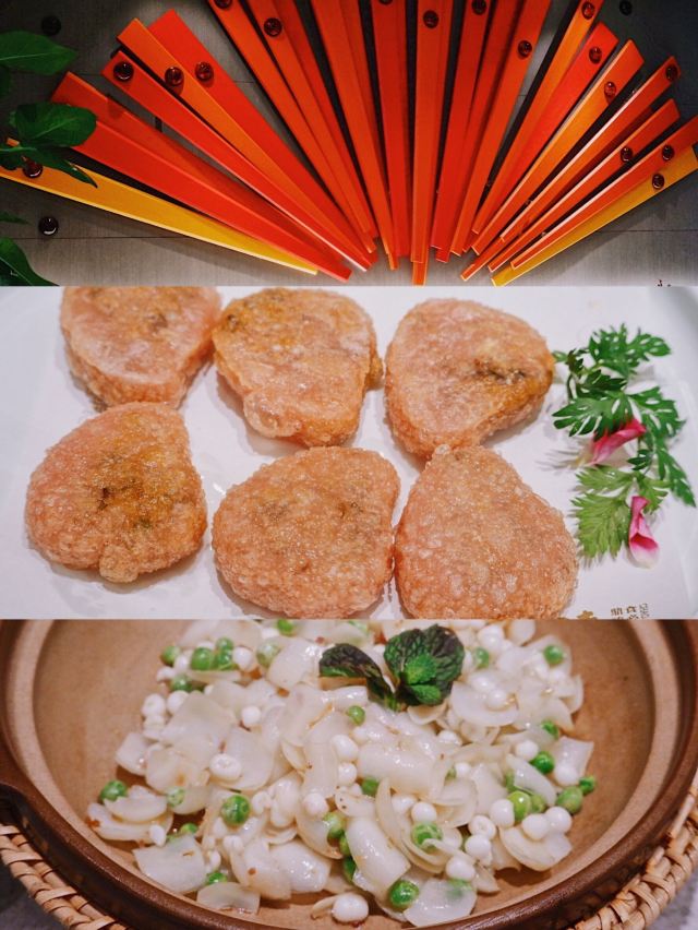 吃饭就别叫我了长寿路上营业到凌晨3点的潮汕餐厅,时时刻刻备好暖粥热菜温暖都市夜归人。来了潮禧以后,你会发现喜欢潮汕菜有N多理由❣️ 🥘京葱烧鲍参🥘将最爱的鲍鱼和辽参收入囊中,新鲜鲍参软糯Q弹,再加上京葱段爆香,勾芡以后吃起来有滋有味。 🍥百合焗芡实煲🍥小清新的养生煲,水中人参的芡实与美容养颜的百合珠联璧合,咸中带甜软糯适口,被我承包了一大半。 🦪清补生蚝鸡煲🐔这一锅十全大补!除了养生佳品老母鸡,还放入了超多生蚝与鸡汤一同炖煮,它是男人的加油站,也是女人的美容院,营养价值都浓缩在汤底里,必须多喝几碗补补元气。 看到🍥潮汕红桃粿🍥的那一刻,我的少女心都要扑出来了💓可可爱爱的红桃造型,里面包裹芋头和香菇肉糜,口感竟然有几分像咸水角。