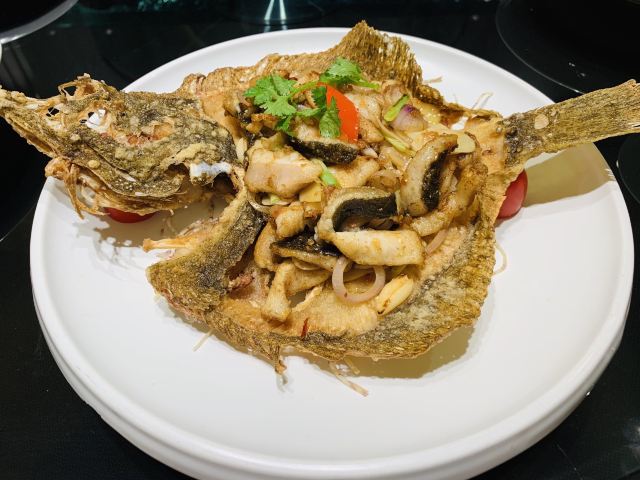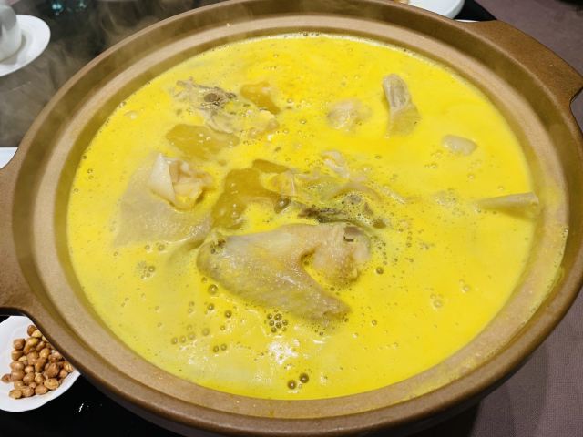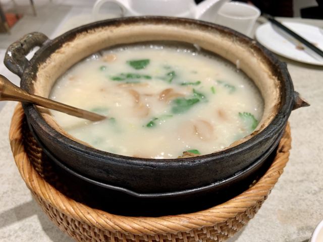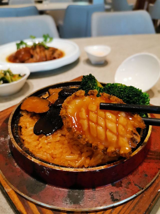 MomoHsuan今年为止吃过最好的海鲜粥,莫过于这一家!食材超多,膏蟹带黄,虾肉鲜甜,粥口味偏淡,无任何添加!其他各色菜品,也是地道潮汕风味,口味独到! ✨环境:亮黄色酒店大堂风格!简约大气,一楼外间堂食,朝里走有包间!海鲜鲜活,有鱼缸养殖!灯光柔和,桌椅干净,总体十分舒适! [调皮]服务:极好的服务!不同于一般中餐厅服务员爱答不理,他们家服务员倒水换盏十分勤快,店主还不时会过来询问菜品满意度,十分尊重客人意见! [爱心]菜品:爱上这家海鲜粥🦞,食材超多,味道一绝! —虾蟹粥:整整一只膏蟹,蟹膏橙黄量多,一块块散落在粥里,鲜味都被煮了出来,虾每一只都劈开为二,虾线处理干净,虾肉有点甜!粥大体口味淡,吃得出没加任何调料,现熬出来!(量有点大,估计三个男生可以吃) —豆酱鸡:第一次吃到那么好吃的鸡,掀开锅就一股浓郁的酱香弥漫!鸡肉被炖得滋滋作响,底部有洋葱和火腿,鲜味都被煮出吸收到鸡肉里!鸡肉鲜美多汁,豆酱都吸收到里面,好吃到喷发!!💥 —炒油蛤:油蛤超大,肉质肥厚鲜美,入口完全没有沙泥,酱汁也是特色的潮汕风味,别样好吃! —菜头粿:为这款菜打call☎️ 粘粘软软年糕样的粿粉,炸的很透,爆炒入味,表层焦香咸鲜,里面有谷物的香气! —鳗鱼卷:新潮做法,乍一看我以为是寿司卷呢!鳗鱼小块包着腌制过的沙姜细粒和火腿块,口味奇特!沙姜很好的去了鳗鱼的腥味,又带出火腿的鲜美!入口软绵又凉凉的,开胃极了! 真心是我在上海吃过最好吃的潮汕菜了,性价比也很高!团购套餐只要三百多就能搞定那么多招牌菜(根据季节不同,具体菜品也是有调整的哦) 🅿️:这边有停车位,用餐提供停车券,2小时,超时的话(停车收费9元一小时)