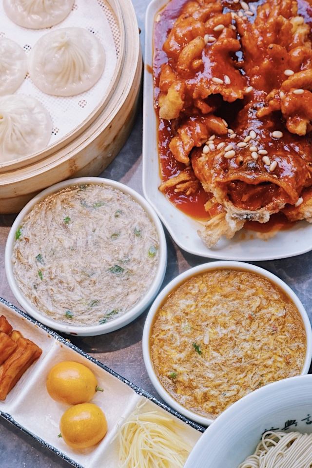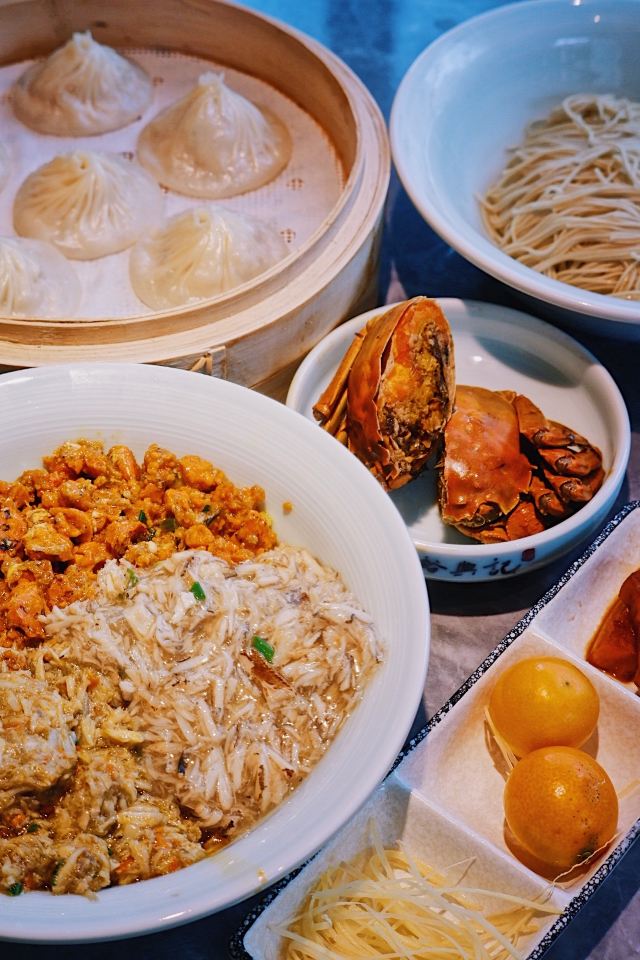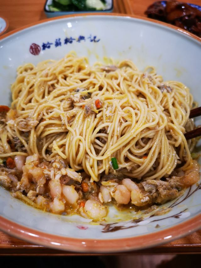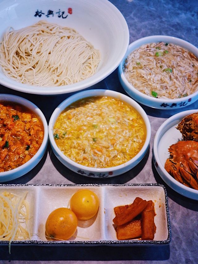 加油干饭呀姑苏十碗面,就选裕兴记,不用舟车劳顿去苏州,在魔都也能get苏州必吃榜的同款美味。 继人广店和南京西路店,裕兴记又来造福浦东人民啦,新开的陆家嘴形象店也太土豪了吧,竟然包下一整栋三层楼!金屋藏蟹果然财力雄厚👏 早餐吃秃黄油面❓会不会太嚣张❓ 谢天谢地,用上团购瞬间接地气‼️ 省下来回高铁票,人均150吃到扶墙出,让你丝毫不必考虑钱包的感受,分分钟实现秃黄油自由🦀️ ✨蟹天蟹地双人餐 ¥258✨ 6只新鲜大闸蟹的蟹黄和蟹膏,方可制作出一碗黯然销魂的秃黄油面,真材实料份量十足,光是看上一眼就垂涎欲滴,满口蟹香实乃欲罢不能🥢 现点现煮的苏式面筋道爽滑富有韧性,先将其打散而后倒入秃黄油搅拌均匀,蘸点蟹醋和姜丝可以提味去腥,两人分享绰绰有余。 同时附赠金桔和酱萝卜,既能开胃又可解腻。 🌟富贵满堂2~3人餐 ¥318🌟 如果蟹天蟹地还不能满足你,那么不妨来一份重磅升级的富贵满堂,把鸡头米虾仁也一同拌入面里,金玉满堂的诱人色面瞬间鲜味升级📈 套餐一举囊括了苏帮菜的经典美食,就连松鼠桂鱼都能安排上,推荐追加一份蟹黄小笼,皮薄肉厚鲜美多汁,这一顿土豪早餐值得回味一整天[害羞]