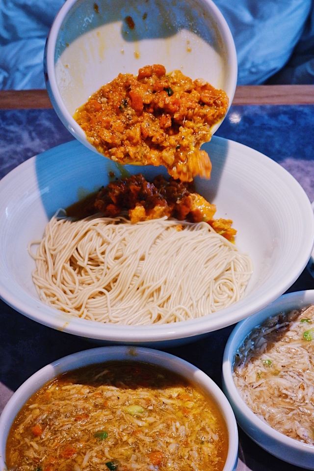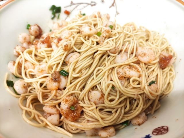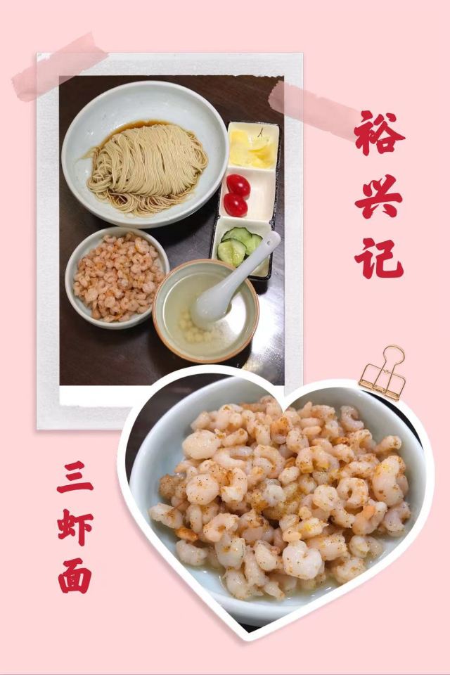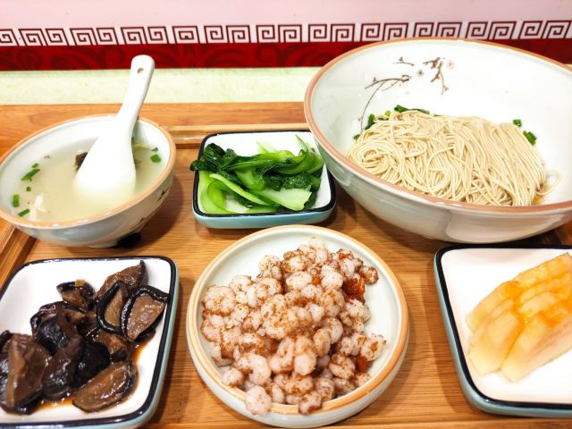 三虾面,红汤面,蟹粉虾仁面,虾仁肉丝,酱爆猪肝,秃黄油面,周庄雪菜,葱油香菇,枫镇大肉面,青菜