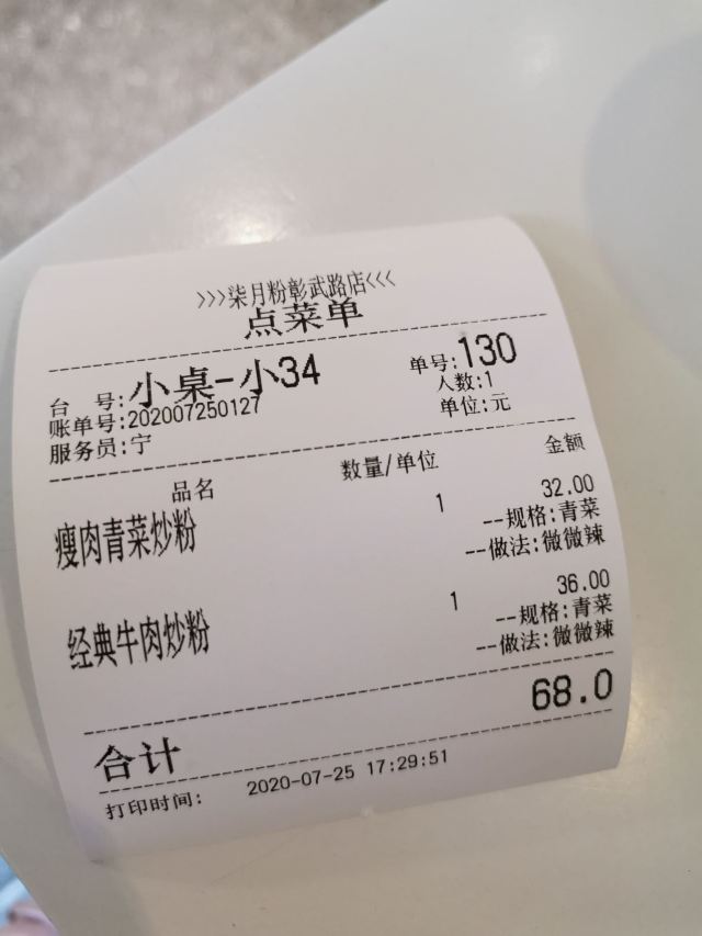 【环境】 餐厅位于杨浦区同济大学正门口马路对面星巴克楼上。里面非常干净整洁。 【服务】 服务员态度很好 【口味】 瘦肉青菜炒粉,点的微辣,这个辣度刚刚好。炒粉出来香气扑鼻,口味佳,推荐 牛肉炒粉,同行伙伴选得牛肉,牛肉味浓郁。 但我自己更喜欢猪肉的。看个人喜好。两种炒出来都很香。