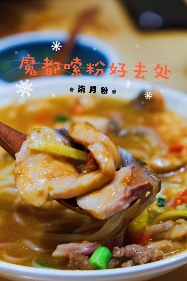 小雪Snow酱柒月粉✨ 名字很可爱的嗦粉店 环境也是小清新,江西米粉拥有柔韧香甜的特质,是米粉的头牌代表,魔都做江西粉的店不多,但这家人气爆棚,晚餐时间还要拿号等位哟,一定要尝尝,究竟神马魅力呢 这儿的辣度分为六档,包括不辣,迷你辣,微微辣,微辣,中辣,重辣,配料也应有尽有,达10多种,辣椒选用的是新鲜的小米椒,他家的微辣已经碾压了普通店的辣水平,所以建议不太能吃辣的小伙伴降低一个辣度哟 经典牛肉炒粉 特色招牌,米粉热乎乎的,端上来就被香味诱惑,在一通翻炒后油光发亮,充满韧性,入味而不断裂,牛肉超级多,里面的豆芽和卷心菜也配合起来很爽口,荤素搭配健康得很,每一寸粉都好吃的深得我心 自制排骨 排骨煮的很入味,骨头和肉肉一咬就瞬间分离,软糯可口,酥而不烂,浓浓的家常味儿 特色变态辣炒粉 命名公道,可以说是全店的辣度担当了!从嘴唇[嘴唇]到舌尖再到胃,一路“张牙舞爪”,能感受不间断嗦的时候的畅快淋漓,这一口火爆让人停不下来,喝一口北冰洋,继续! 鱼汤粉 米粉浸透在鱼汤里,充满了独特的爽滑口感,不黏连,仿佛能在舌尖穿梭自如,鱼块不仅超级大块,而且给足了量,那一口汤汁太鲜美了,冬日里吃一碗汤粉心里暖洋洋☀