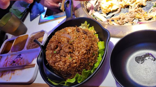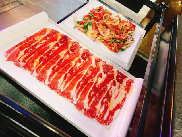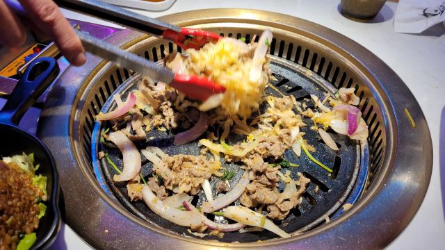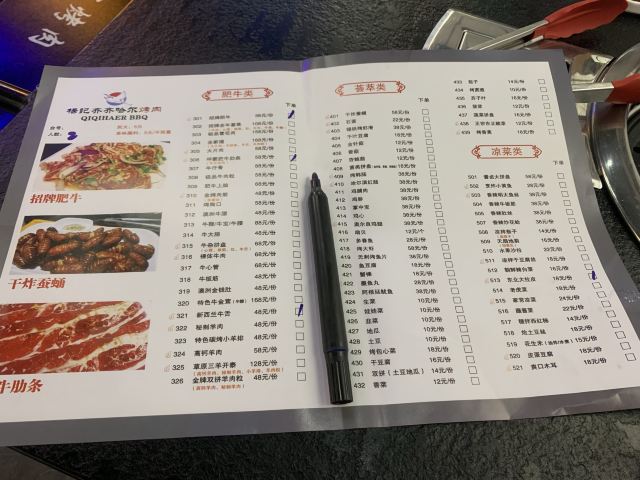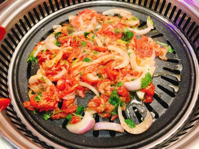 Q Gun【服务】东北人的服务一直杠杠的 从之前去长白山滑雪就给我留下了深刻的印象 这次也是 店主夫妇非常热情主动细心 帮忙烤肉的阿姨们也很nice 超级满意! 【环境】店面不大 总共就十几二十桌的样子 工作日晚上需要排会儿队的 店里该有的厕所 洗手台 洗手液 纸巾都很齐全 蛮好的。 【菜品】嗯,就是电视里《人生一串》纪录片里看到的那种东北烤肉,跟墙上的标语写的那样,齐齐哈尔人是几乎每家每户都有个烤肉盘,时不时要聚在一起吃烤肉的人儿啊!讲真,并不是太合上海人口味,主要就是吃个新鲜吧~ “澳洲肥牛肋条”肉质不错;“新西兰牛舌”口感也很ok。 “招牌肥牛”这种荤素相间的烤肉是一般韩式/日式烤肉里不常见的菜色,洋葱太出彩了! “酸菜”很棒哦!第一吃见这种样子和颜色的酸菜,也第一次吃烤酸菜~ “东北大拉皮”也很满意,最喜欢吃东北饭店的大拉皮和西北饭店的凉皮/米皮啦! 其他不常见菜色比较一般,随便吃吃~~ 不附送蔬菜,需要自己点,trust me,一定要点蔬菜过肉一起吃,否则太腻了,罪恶感太强。 调料略咸,回家喝了很多水,不过也打开了又一个新领域,原来烤肉蘸醋味道也还不错诶!