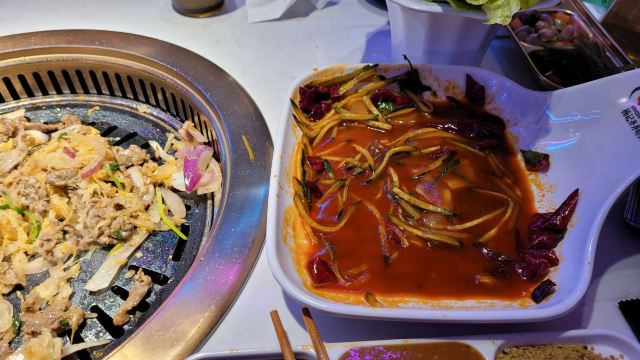 DADA*987店面不大,地板有些滑,肉很好吃,酸菜也很爽口,朝鲜冷面解腻。很不错。