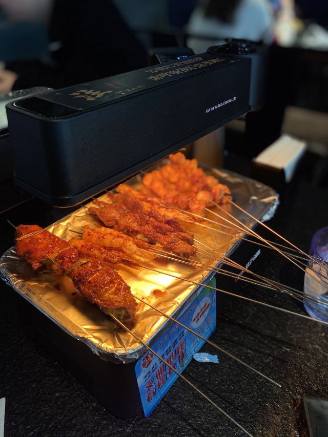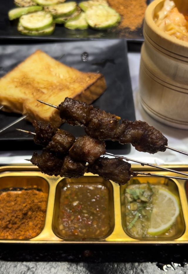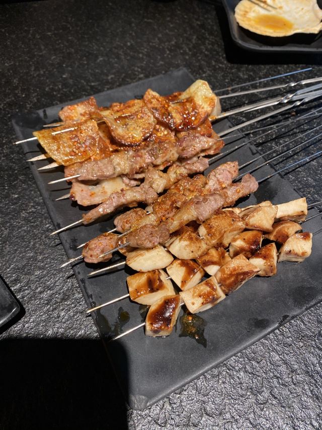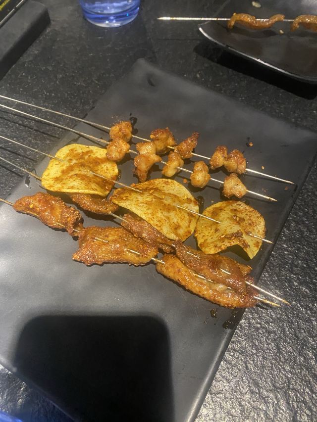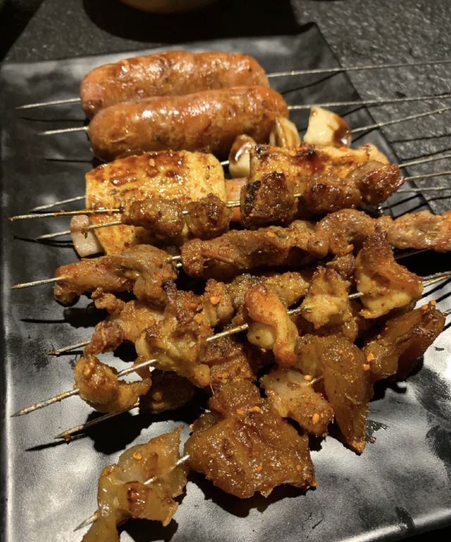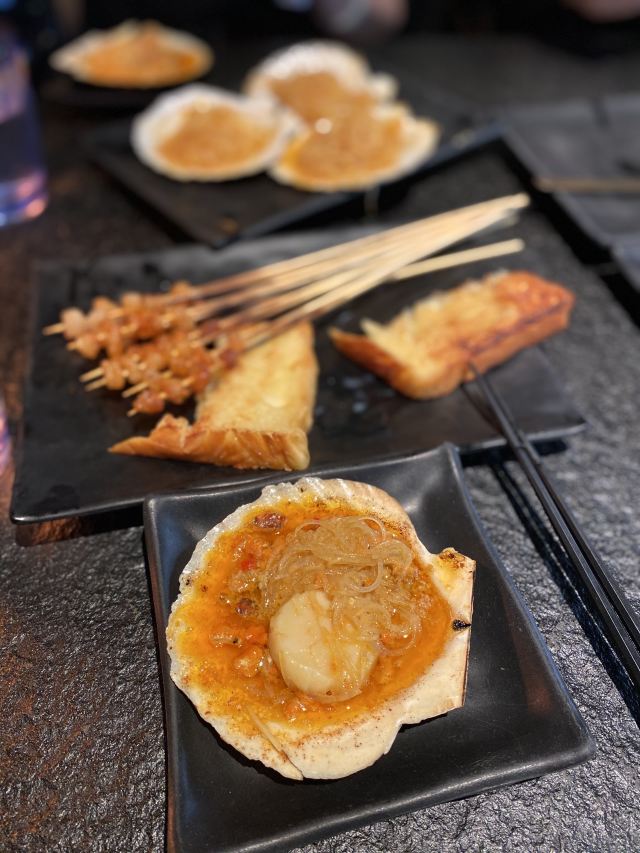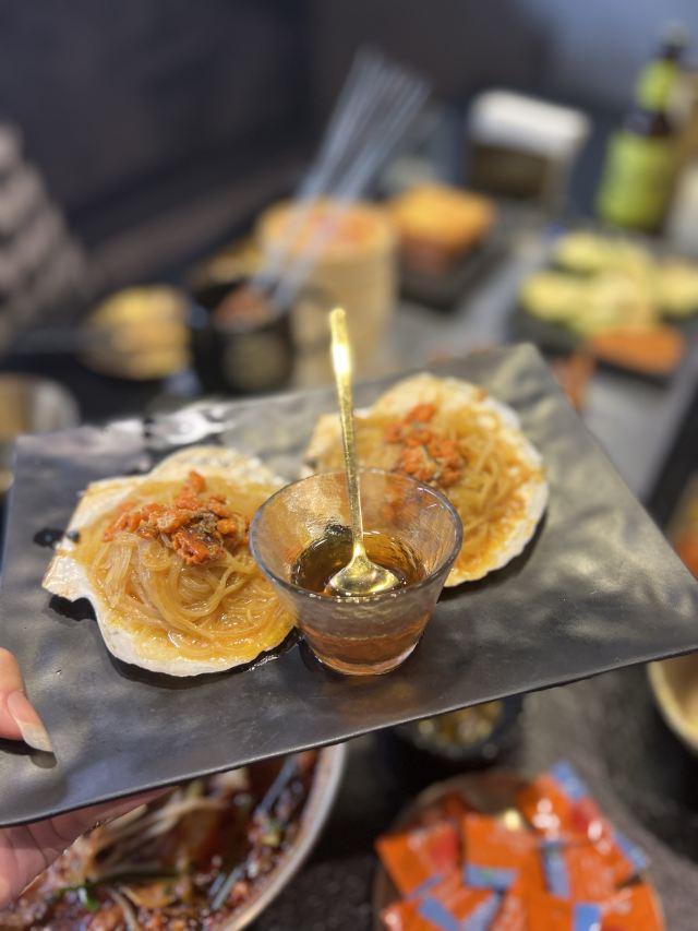 魔都打工人下班去哪🍻 不要总惦记淄博烧烤啦 当你吃过云南烧烤后 #上海·潘小烧·云南烧烤(静安店)[地点]# 就会刷新烧烤排名 当面用火烤制“火把小牛牛肉串” 肥瘦相间 超爽 蟹粉扇贝 加入姜醋祛寒还能提味 百香果米线酸酸辣辣酸爽开胃