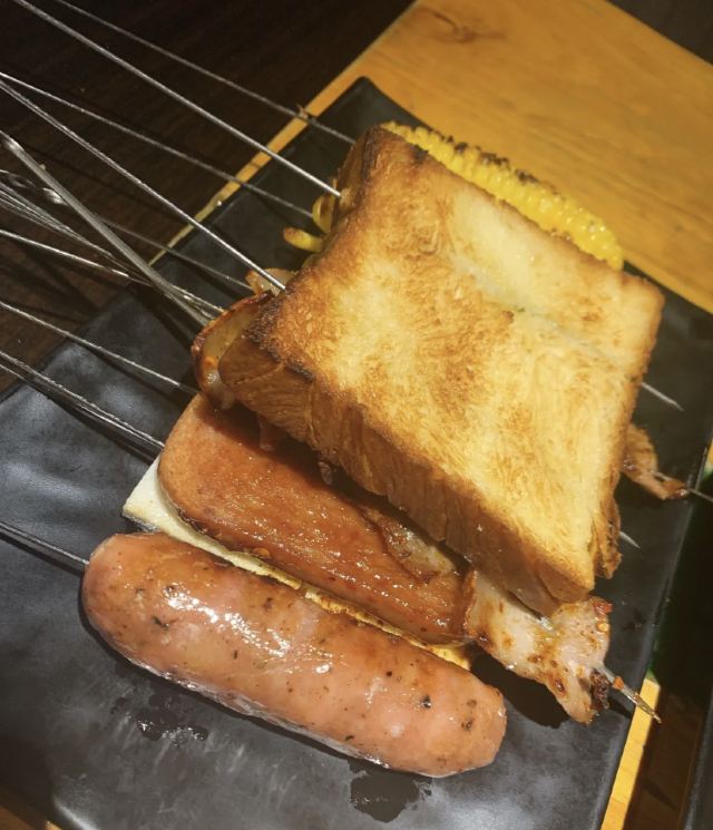 火把小牛牛串,招牌小虾虾串,烤咸蛋黄扇贝,肉酱多多烤茄子,小虾虾串,黑鸡枞冬阴功汤巨鲜贝,香烤掌中宝,蒜蓉扇贝和带子,烤北海道面包,卤烤猪蹄,蜜桃酒酿豆花,云南炸洋芋,洪荒鸡翅,蜜桃酒酿淡布丁,脆烤鸡皮,烤掌中宝,云南卤烤鸡爪,小鸡鸡串,锡纸鸭血豆腐,云南碗仔蛋,香烤金针菇,不断有小哥哥续杯的柠檬水,鲜虾蟹籽净云吞,酱烤猪肝,匠心蟹粉鲜扇贝,真包浆云南豆腐,百香果酸辣小锅米线,真香牛油小小串,绣球菌酸辣虾滑