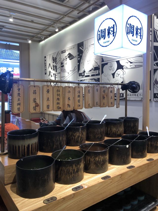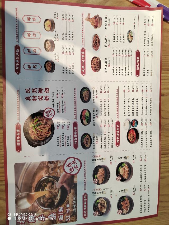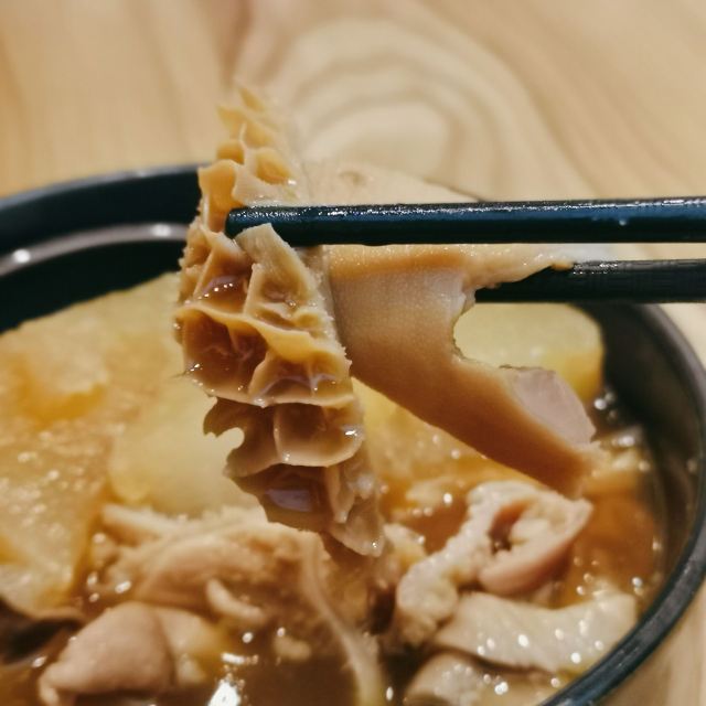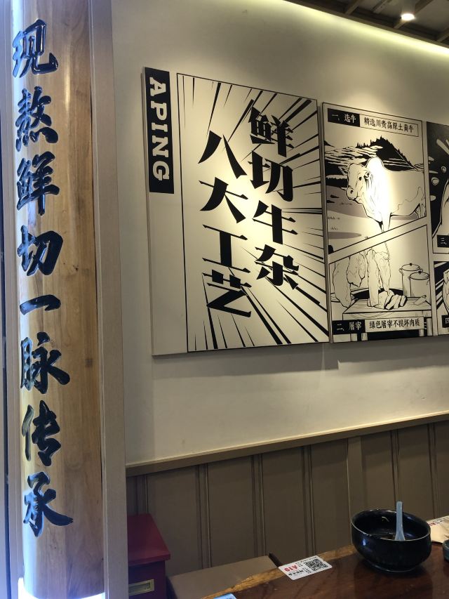 tudesign这家店以吃牛杂为主,有汤粉/面、原味/红烧汤饭、拌粉/面、净品类(净牛杂、净牛肉、净牛肚等)、阿平风味小吃(南瓜饼、风味土鸡蛋、慢炖鸭血等)、冒菜类、饮料/甜品。 之前点过一次番茄味的牛杂米粉,这次点了萝卜牛杂口感不错,牛杂的量也还可以。点米饭的话听服务员说米饭可以免费续。有活动赠送的冰粉也很好吃。 仔细看了看墙上的漫画配合的文字 1.选牛 精选川贵高原土黄牛 2.屠宰 绿色屠宰不损坏肉质 3.清洗 专业清洗保肉料无菌 4.配料 秘制配料健康还原味 5.佐料 绝佳佐料更香浓四溢 6.煲煮 加料有序煨足六小时 7.剪切 成品剪切大块饱口福 8.出锅 控温控时为原汤原汁