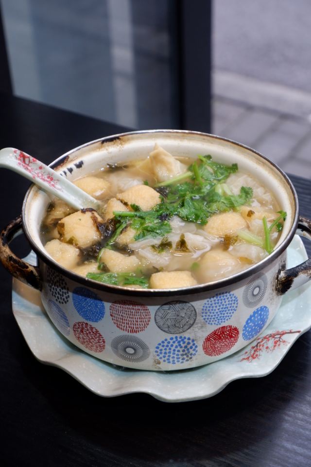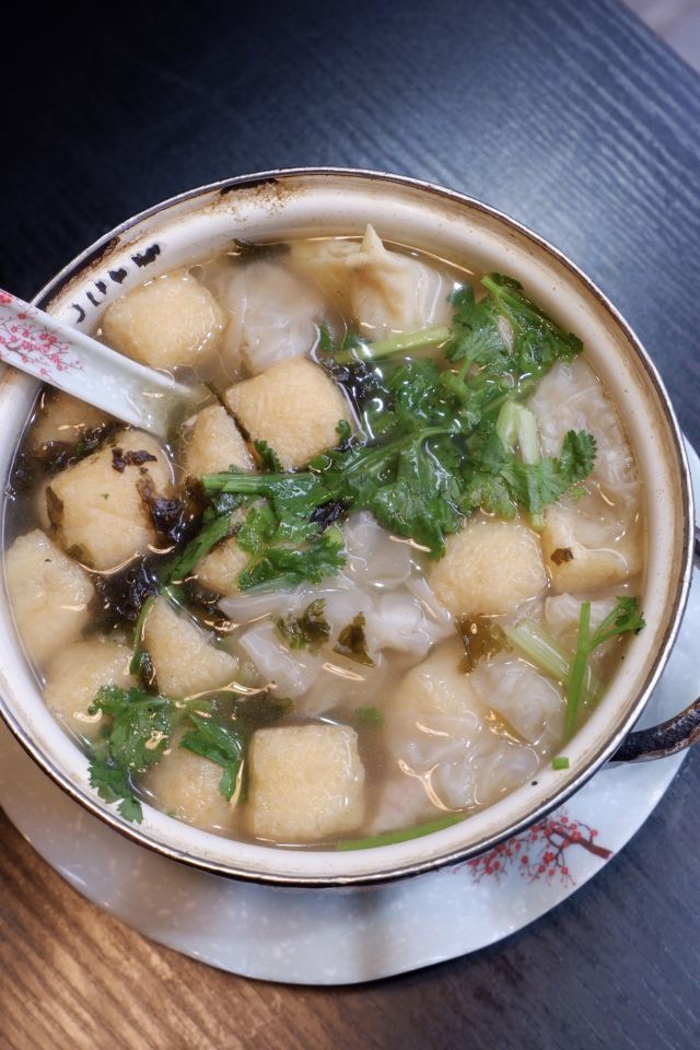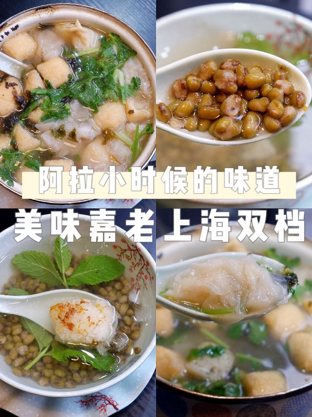 Sasa0828上海阿姨开的一家正宗老上海双档小吃店 除了他们家有名的双档汤以外 我还看中了砂锅小馄饨和特色绿豆汤 味道做的太好了 就是我小时候吃的那个味道 店里不是太大 座位也不算太多 估计工作日人肯定很多 双档汤+砂锅小馄饨 我们点了一个这个组合 原本以为应该是两碗 想不到却是把这两个结合在一起放在了同一个砂锅里 小馄饨的量不是很多 大概6个左右吧 粉丝还挺多的 里面还有两个油面筋和百叶包 里面塞满了肉肉 吃上去肉很鲜 食材也挺新鲜的 最爱喝的就是这里面的汤 应该是放了鲜辣粉的 这个鲜辣粉也是我小时候吃的那个味道 回忆满满 老上海绿豆汤 绿豆汤也是超级好喝 味道不是很甜 里面除了绿豆还放了桂花糯米和薄荷叶 吃上去口感非常的清凉 简直就是降暑神器