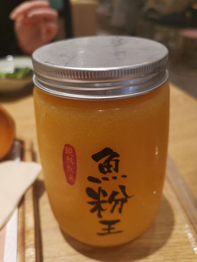 鱼粉王·现熬鱼汤(晶品店) 在晶品的B2,电梯一下来就看到了。店里工作人员都戴口罩的,防护措施还是做得很好的。 点了秀水鱼头粉,一整条鱼在里面,鱼汤非常鲜美,粉条也顺滑入味哦。而且可以免费加粉加汤一次。 店里的冰粉免费DIY,加入芝麻还有红糖水后特别好吃。 还点了卤蛋,也是很入味哦~