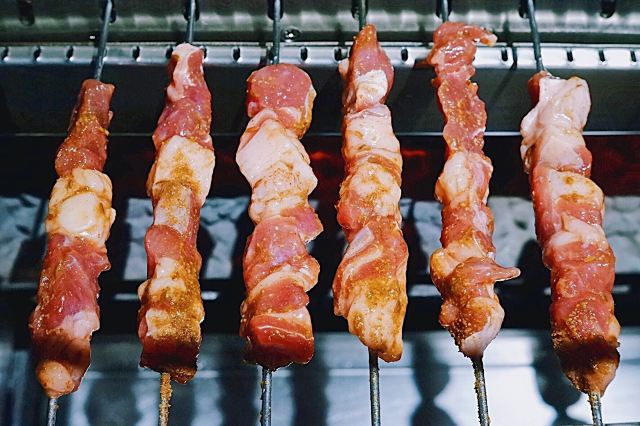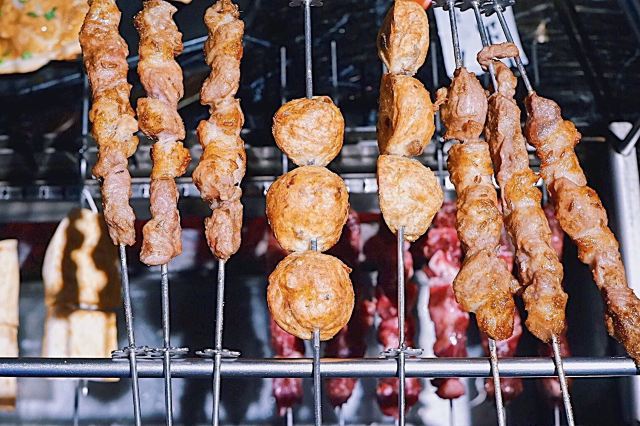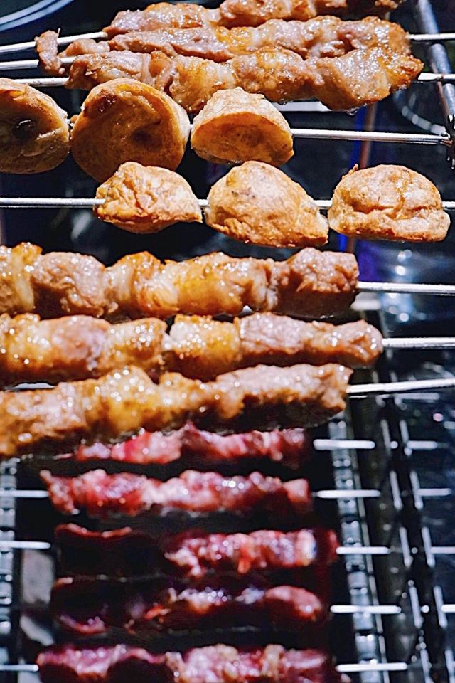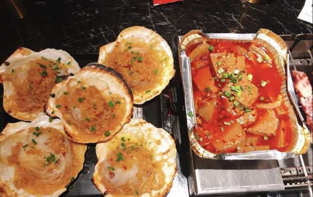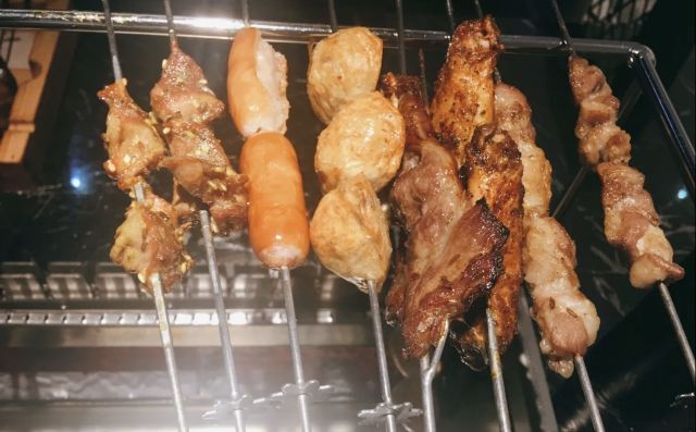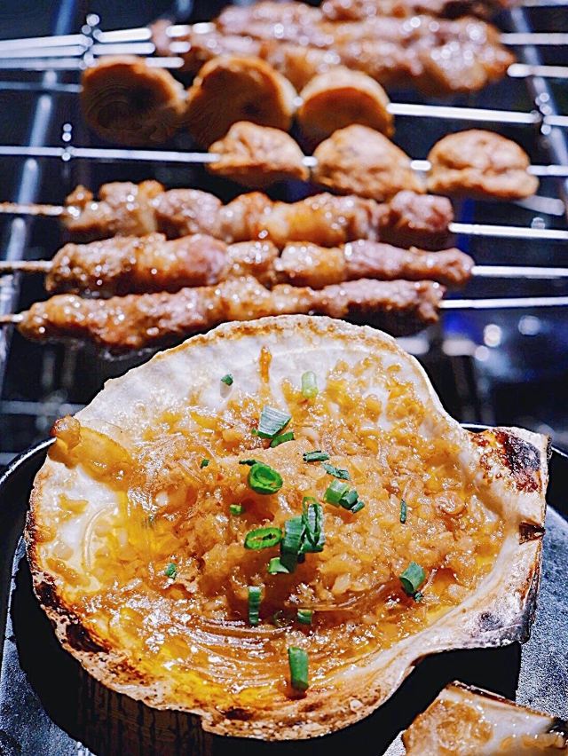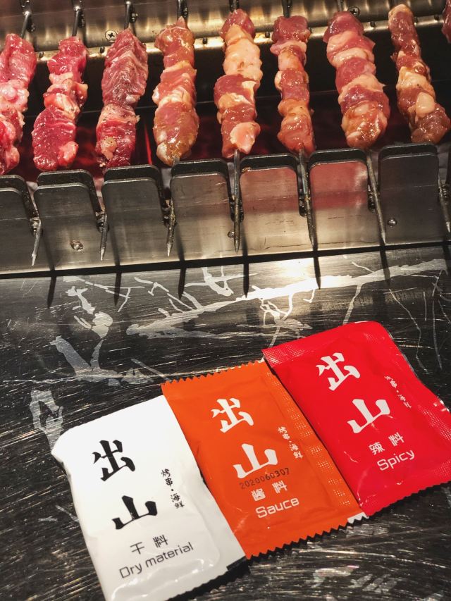出山精选牛肉串,出山秘制羊肉串,法式羊排,麻辣烤鸡翅,烤带子,锡纸茄子,烤扇贝,面包片,锡纸金针菇,烤生蚝
