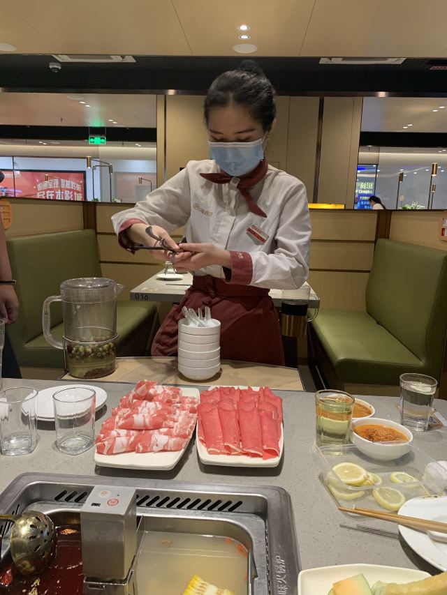 帮朋友搬家,晚饭订在海底捞 疫情之后第一次来 怎么说呢,热情的服务有些招架不住 口罩有专门塑封袋,干净卫生 很贴心 餐前小食,餐前水果,餐前粥品…… 很全面 给热毛巾、添饮料等等都有专门标示牌 很细致 可操控上下的汤锅 再也不用满锅里找菜品了 可口的菜品在服务面前已经黯然失色 来海底捞吃的不开心很难