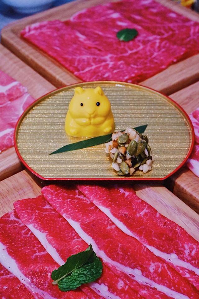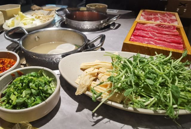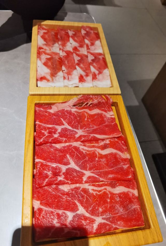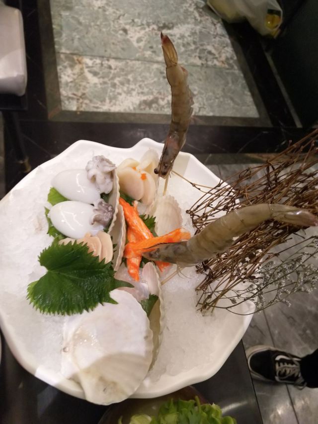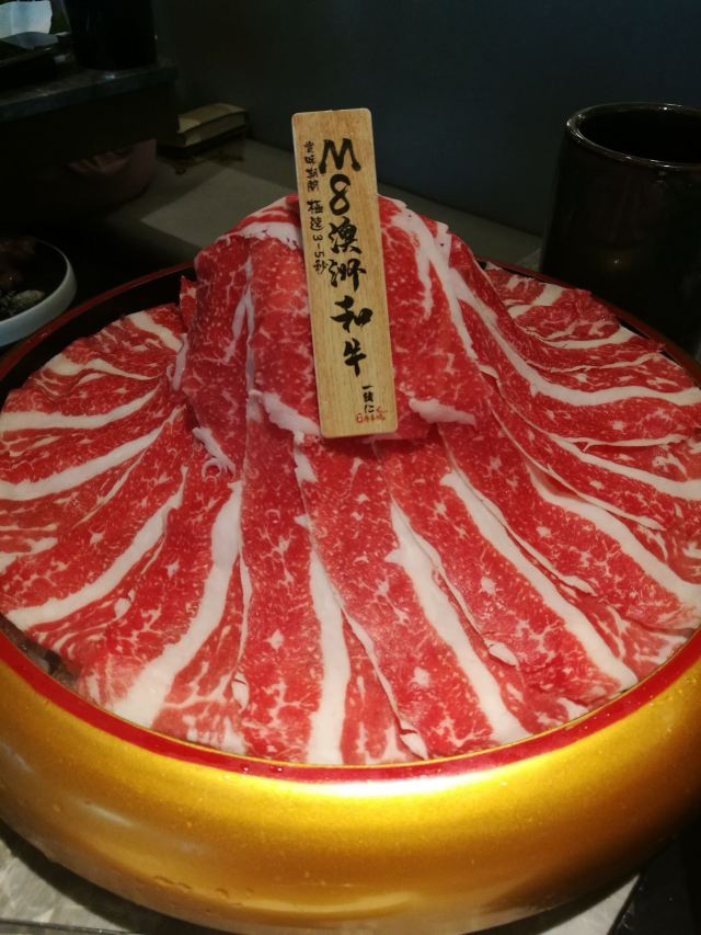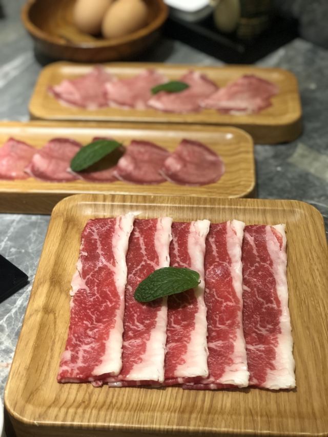蛋花食游记被朋友安利的寿喜烧自助,公司附近,周末去的,门面很大,装修精致典雅,人很多,需要排队 他家的锅底有好几种,点了最热门的寿喜锅低和花胶鸡锅底。鸡蛋用的是可以生吃的朝一鸡蛋,这种鸡蛋市场价就要3元左右一个,质量上还是很过硬的 降霜牛肉,他家的牛肉品质真的很高,降霜牛肉的油脂分布很丰富,很漂亮,看着就很有食欲,涮几秒钟待变色即可食用。入口绵软嫩滑,但又不失嚼劲,好吃 虾丸,店家的特制虾丸,很大个,入口鲜嫩Q弹,很新鲜的感觉,喜欢 牛百叶,没想到牛百叶涮寿喜烧也那么好吃,纤维化的质感让你咀嚼的停不下来 另外他家的蘸料很多样,特别有个柚子醋,非常好吃,蘸牛肉超级棒,大爱