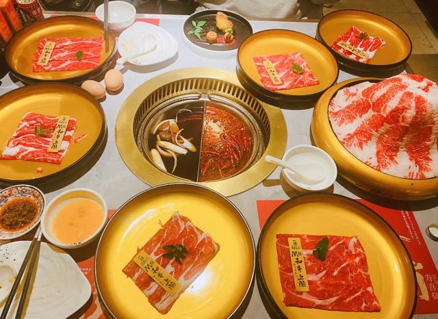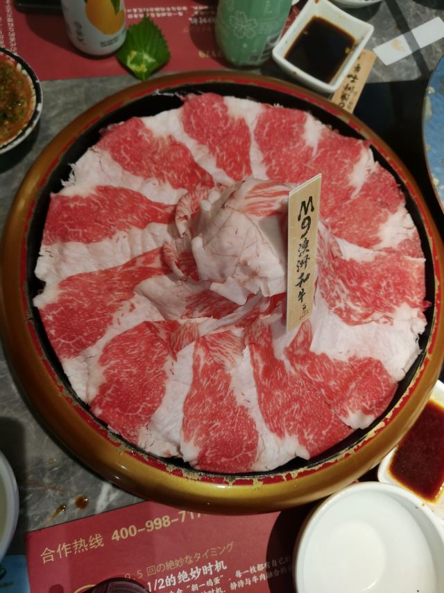 澳洲M6极上和牛,牛肩肉,鱼籽鲜虾滑,薄切牛舌,火焰牛舌,焦糖布丁,招牌寿喜锅,朝一鸡蛋,M7澳洲和牛畅吃,海鲜拼盘,极上刺身拼盘,安格斯牛排肉