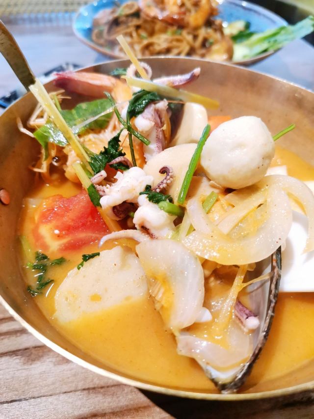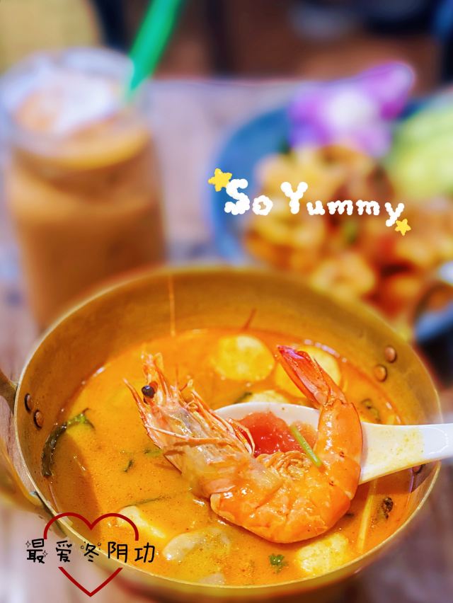 秋趣上海:秘之味东南亚料理 地址:耀体路308号晶耀商务广场东区3层L314 交通:地铁6/8/11号线东方体育中心站4号口步行5分钟 在异国美食中,个人对东南亚料理还是有点偏爱,尤其是那道冬阴功汤,那份酸辣比起国内的火锅容易上口了。这家餐厅虽然有点远,但交通却十分便利,地铁乘到东方体育中心站,从4号口出,往右步行没几分钟,就看见晶耀商务的大楼,从东区进入,乘电梯到3楼,一眼就能看到店招了。 店家的餐厅是半封闭形式,车厢座的排列,有一种熟悉的马来西亚餐厅味道,服务员很热情,入座上茶,氛围尤好。餐厅的墙上挂了来自马来西亚厨师的照片,后来有接触了厨师,汉语说的很溜,交流中得知,为保障领事官员用餐的需要,他家疫情期间也没有关门,很不容易。 【娘惹山药卷】看到这道菜名,非常亲切,山药卷外脆内糯,真心好吃,吃着不由自主地就想起了在槟城的旅行时光,想起了娘惹博物馆留下的记忆。 【招牌海鲜冬阴功汤】每次去东南亚旅行,这道菜是必须品尝的,没想到在国内也尝到了味道很正的这道汤,食材地道,酸中带甜,辣味正好,一份单人餐,吃的汤水不剩。 【马来炒面】这是一道主食,面炒的火候正好,不软不硬,非常入味,尤其是里面的油豆腐,酥而有嚼劲,赞一个! 【手摇三色奶茶】独具特色,有颜值,甜味适当,因为有了这杯带冰奶茶的解辣,导致我把冬阴功汤全喝了。