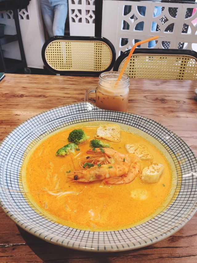 咕噜cloro📍秘之味东南亚料理,位于晶耀前滩东区3楼 🚇地铁6,8,11号线均可到达 [薄荷]环境: 东南亚风满满的浪漫气息🍃 「咖喱喇沙」海鲜咖喱喇沙作为主食是不错的选择,超大只虾🦐,咖喱味浓郁,和我多年前在马来西亚吃到的一毛一样[调皮] 「马来西亚冰拉茶」夏天不来一杯冰拉茶,日子怎么过[偷笑]爽口拉茶暴风式吸入[得意] 「榴莲网饼」是榴莲➕椰浆和网饼的组合,吃的时候,将榴莲和椰浆包入网饼中一起食用,榴莲控的你绝对不可以错过噢❗️因为你会发现榴莲➕椰浆原来是这么美味的神仙组合[调皮] 「娘惹山药卷」外表脆,内心软糯香甜[爱心] [服务铃]服务: 店家小姐姐和小哥哥们服务都超棒!热情客气,会贴心介绍你所点的菜品[强]