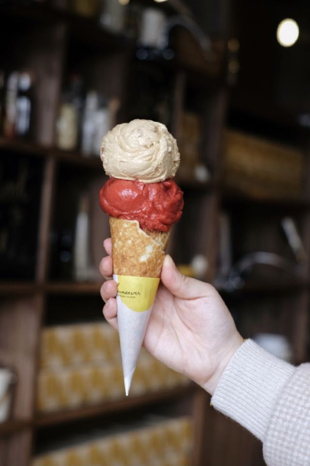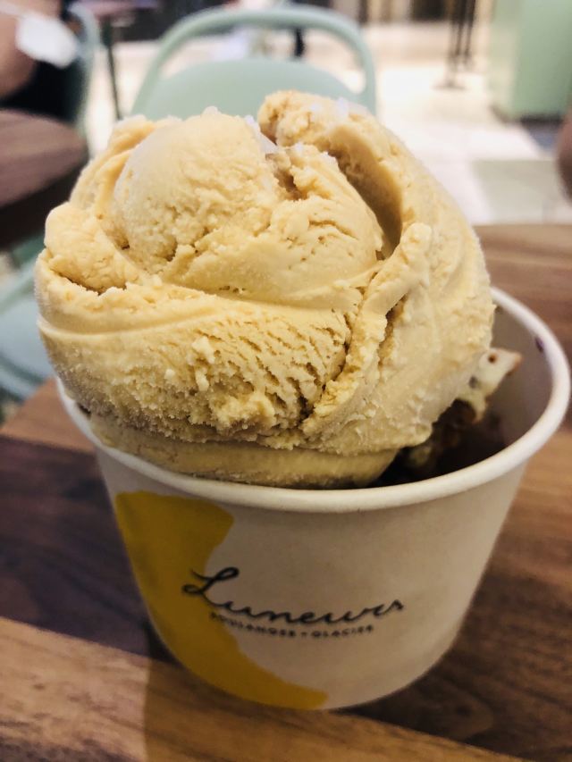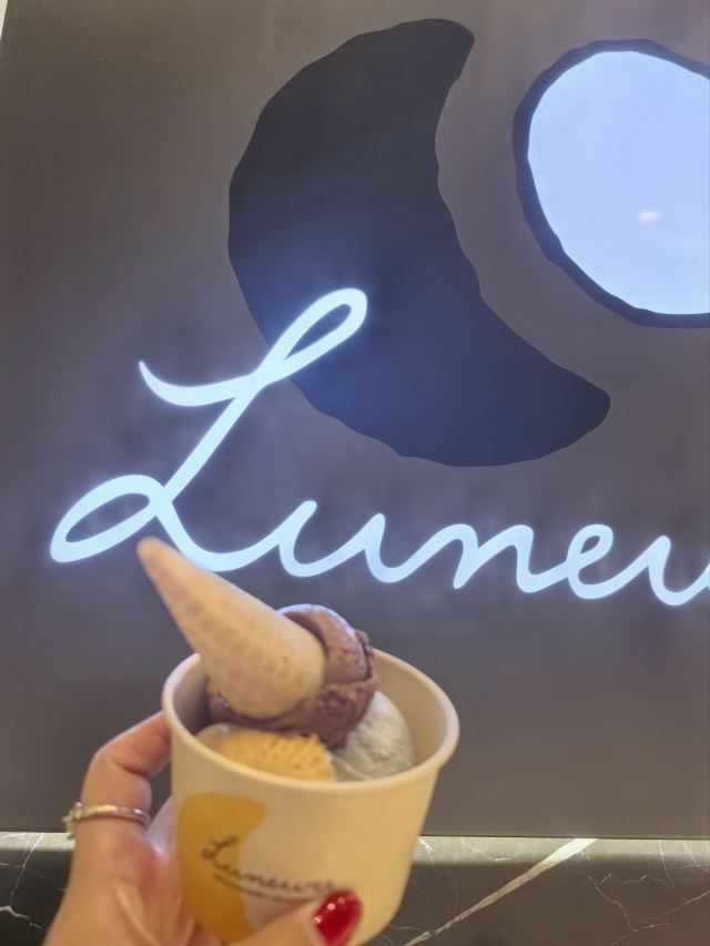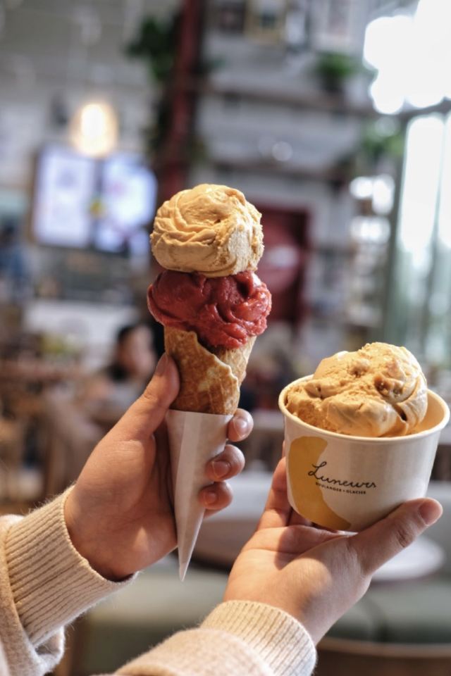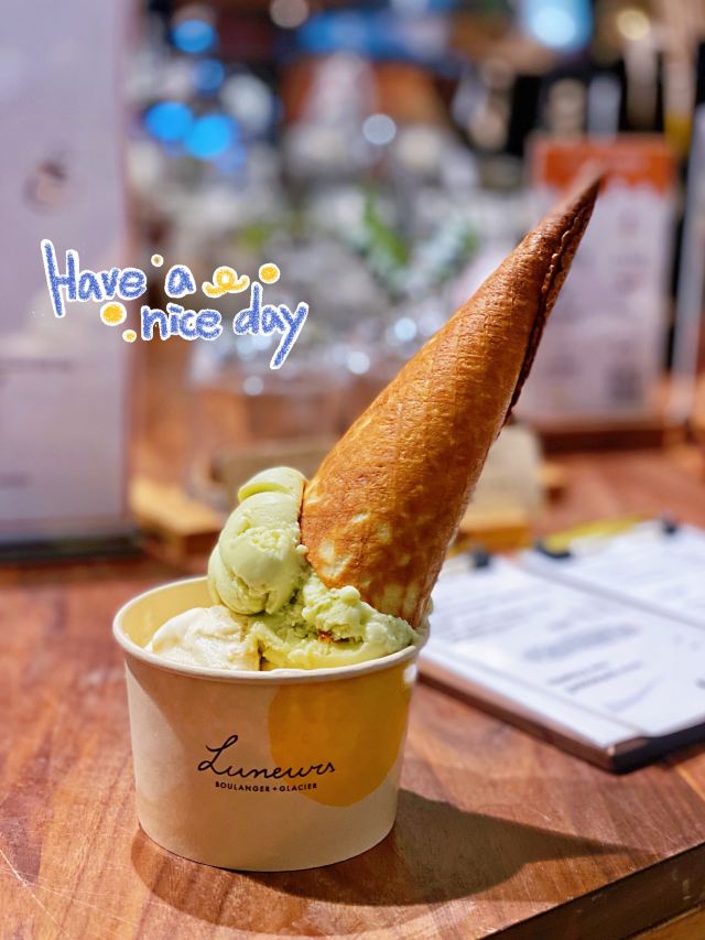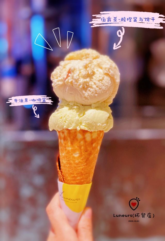 寂寞的西瓜打卡收藏List里躺了很久的这家:「Luneurs(环贸店)」😋😋 📌位置: 店铺就在iapm五楼的#Taste 5#,顾名思义,整个五楼基本上都是大大小小的餐厅和各种食铺。「Luneurs(环贸店)」夹在比较狭窄的中间位置,意式餐厅BANG的隔壁就是。 🔖提示: 如果想两个人share双球,记得选华夫筒,然后多要一个空纸杯就行。分装两个纸杯的话,是会被按照单球*2的价格来收哒😜 🍦口味: 质地rio细腻绵软,但是风味略嫌不足,无论「牛油果-咖啡酱冰淇淋」,还是「伯爵茶-酸橙酱与饼干·冰淇淋」,都有类似的问题。 U1S1,它家的现做的华夫筒还是很棒棒哒,几乎比冰激淋本身更有爱一丢丢。 相比之下,还是更爱某D字头家的出品,风味明晰,甜度也比Luneurs更克制。